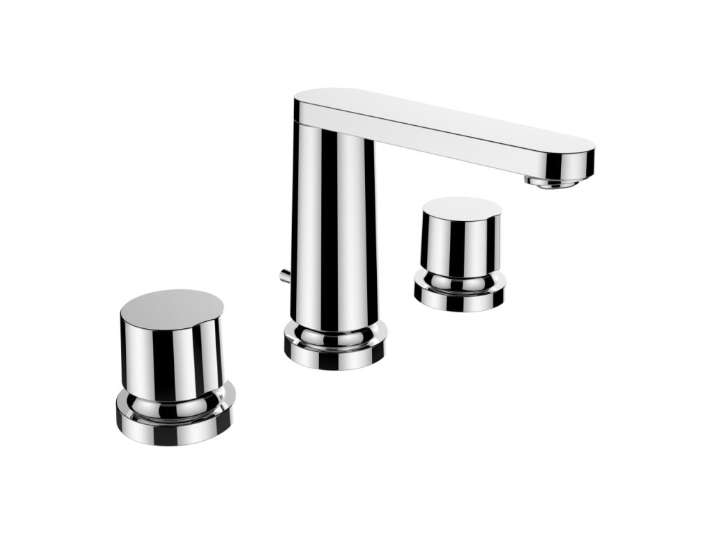 Extended Description: | Umyvadlová tříotvorová stojánková baterie, pevný výtok 130 mm, chrom s automatickou výpustí |