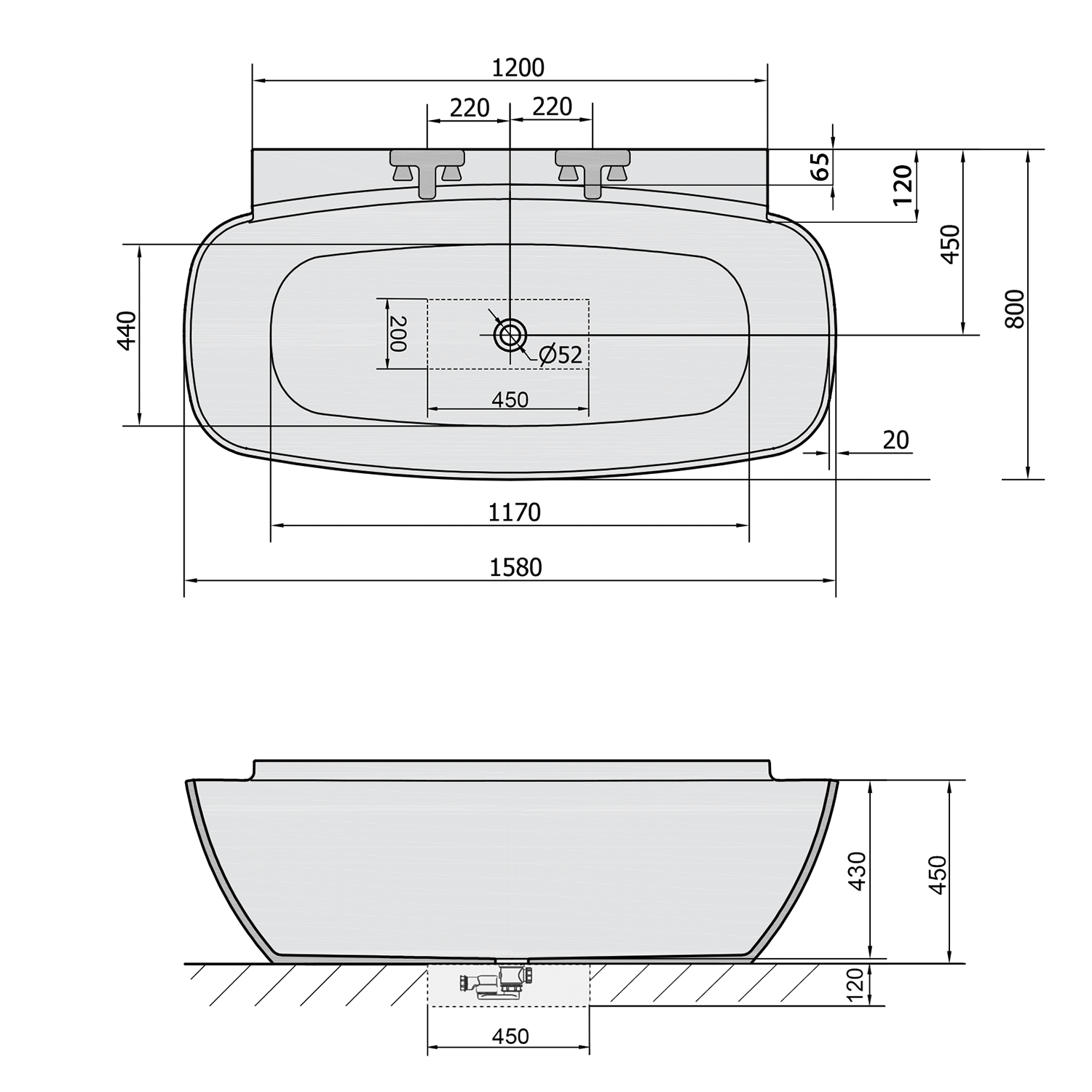 - Vana je dodávána bez přepadového otvoru.