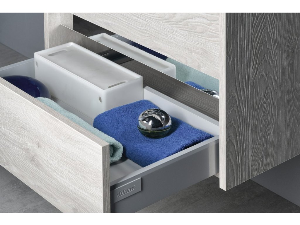 Při výrobě nábytku používáme systém výsuvu zásuvky BLUM® TANDEMBOX antaro s integrovanou funkcí tlumení BLUMOTION. Všechny zásuvky vybavené tímto systémem otevřete nanejvýš lehce a snadno jedním pohybem ruky. TANDEMBOX antaro zajistí vysokou kvalitu pohybu při dynamické nosnosti 30 a 65 kg.