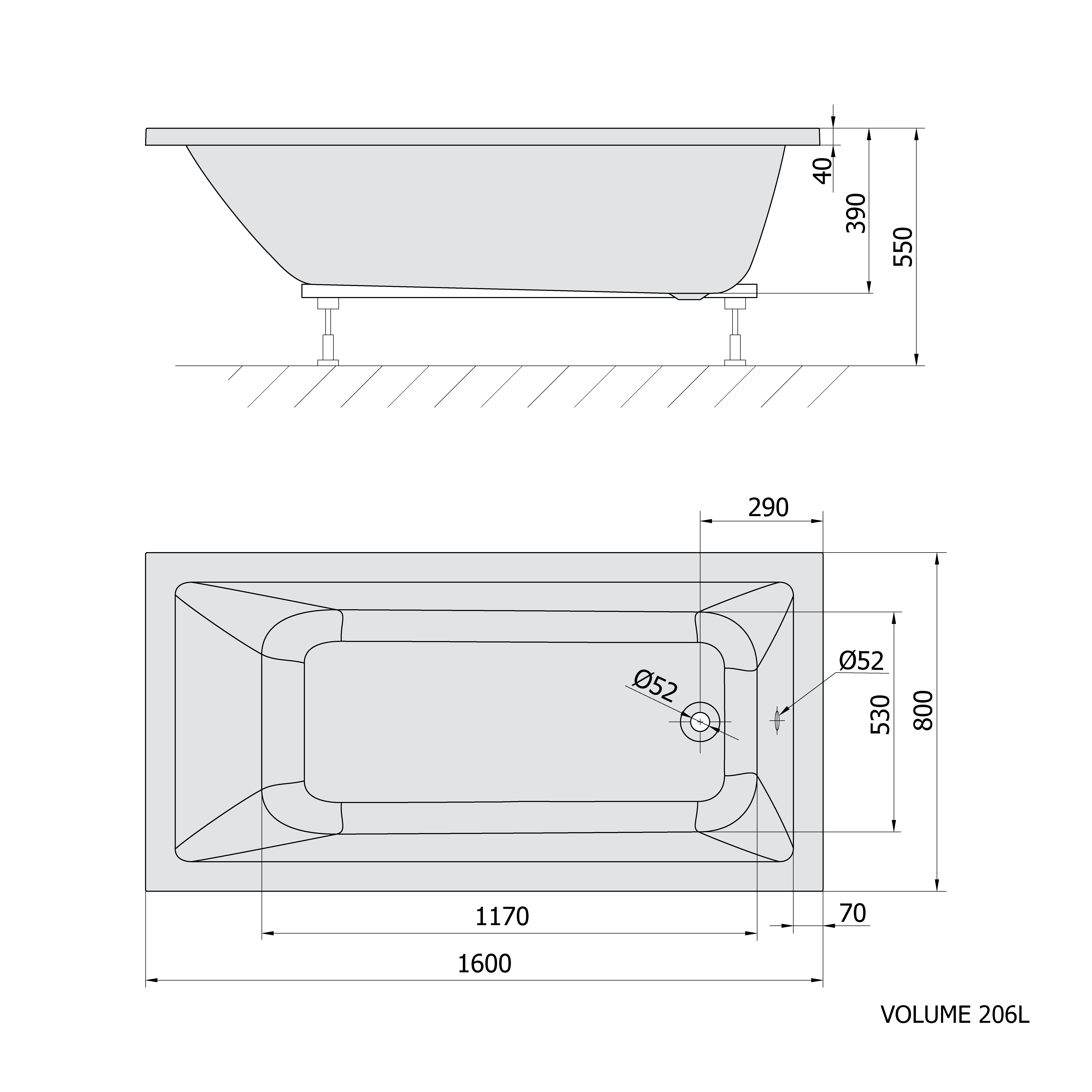 NOEMI obdélníková vana 160x80x39cm, šedá