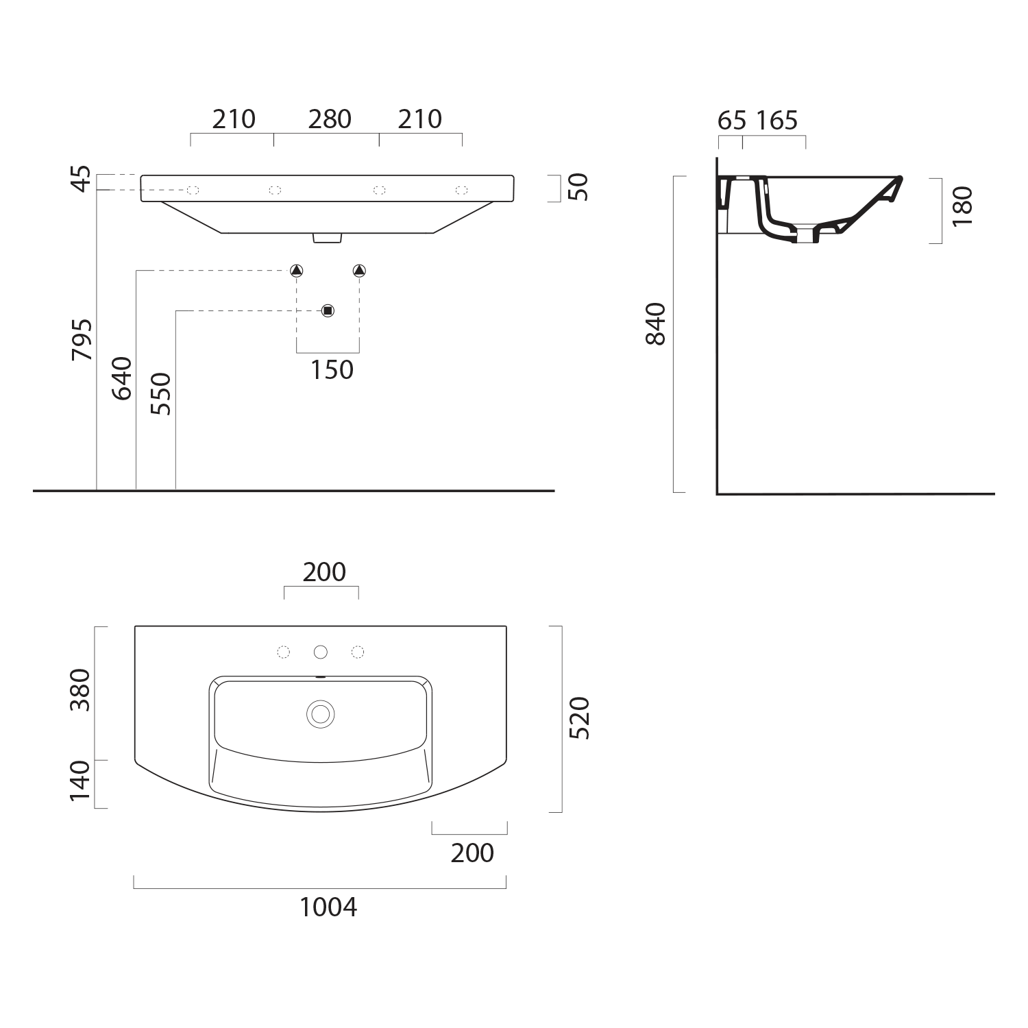 NORM keramické umyvadlo 100x52cm, oblé, 3 otvory, bílá ExtraGlaze