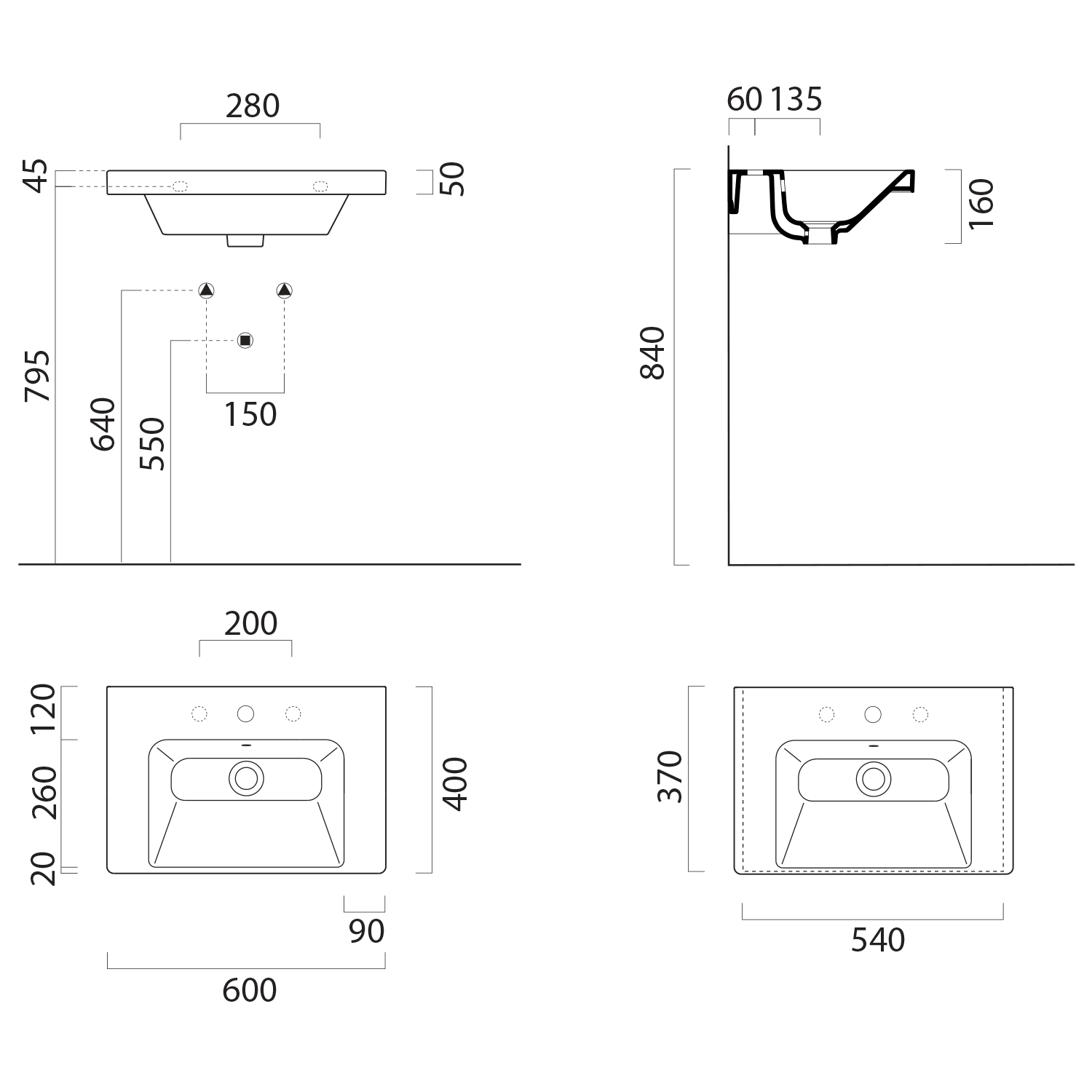 NORM keramické umyvadlo 60x40cm, bez otvoru, bílá ExtraGlaze