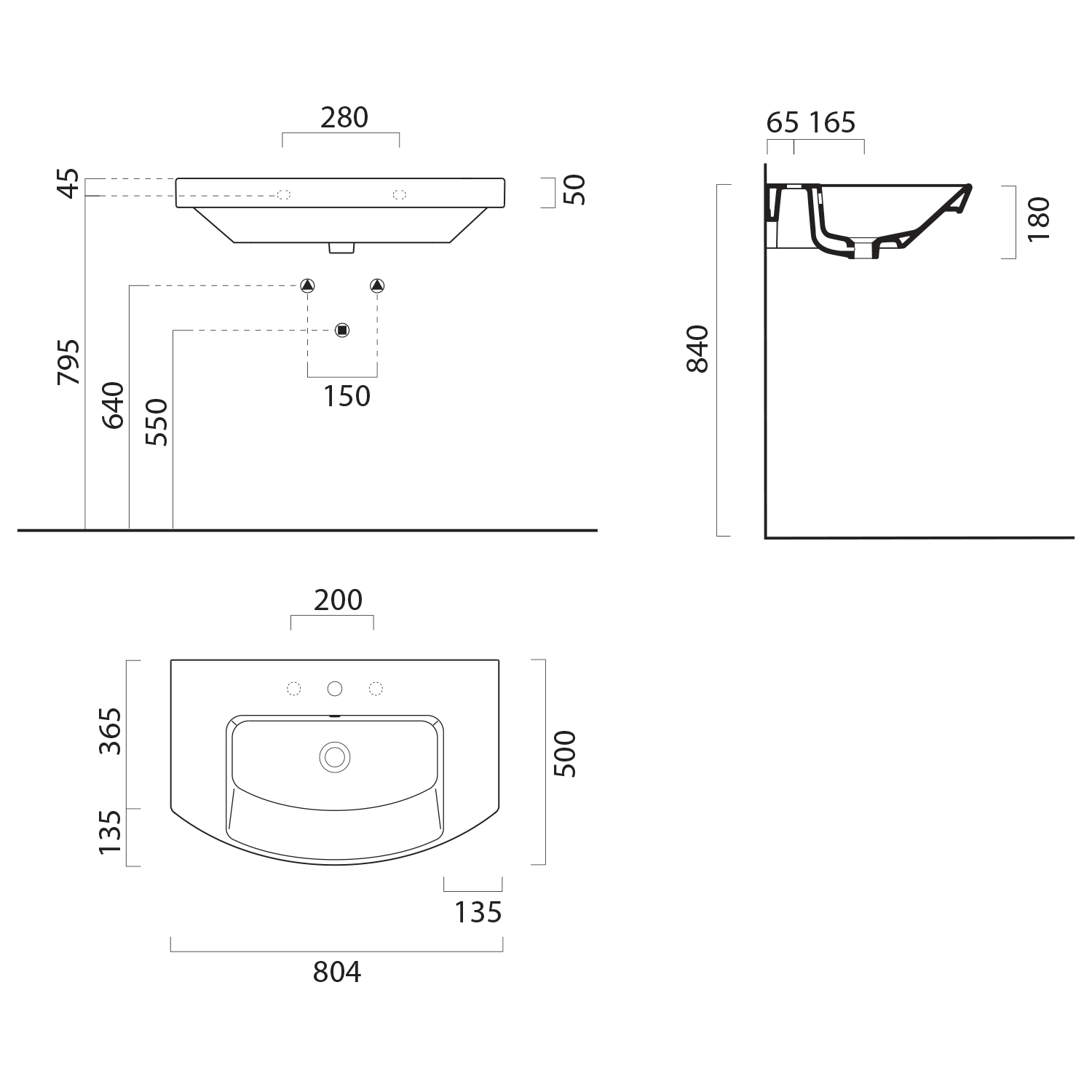 NORM keramické umyvadlo 80x50cm, oblé, 3 otvory, bílá ExtraGlaze