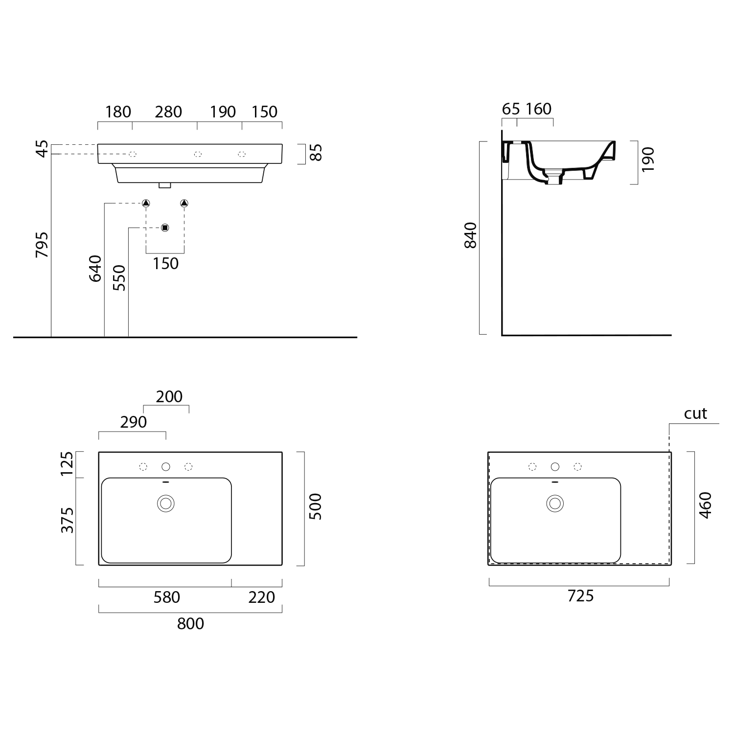 - Hranatá umyvadla s decentně zaoblenými rohy a štíhlou hranou
