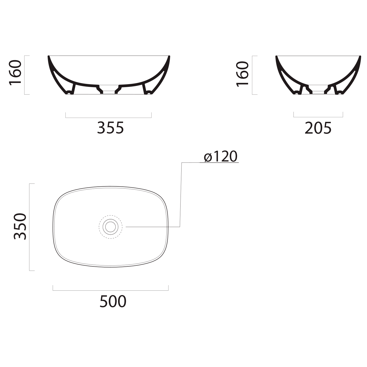 NUBES keramické umyvadlo na desku 50x35cm, ghiaccio mat
