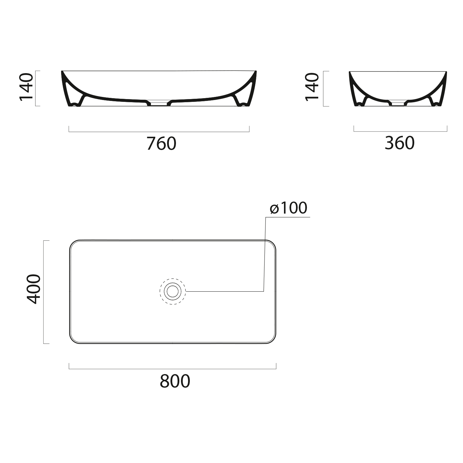 NUBES keramické umyvadlo na desku 80x40cm, ghiaccio mat