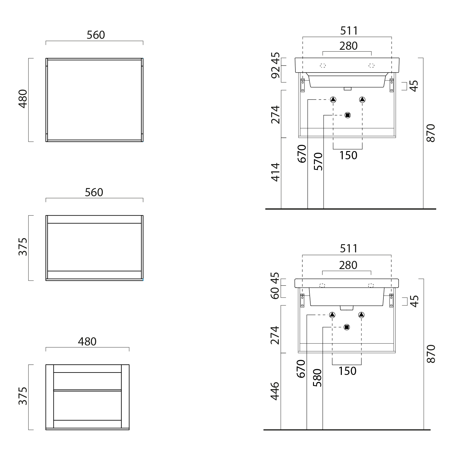 NUBES/NORM konstrukce pod umyvadlo 60x50cm, černá mat