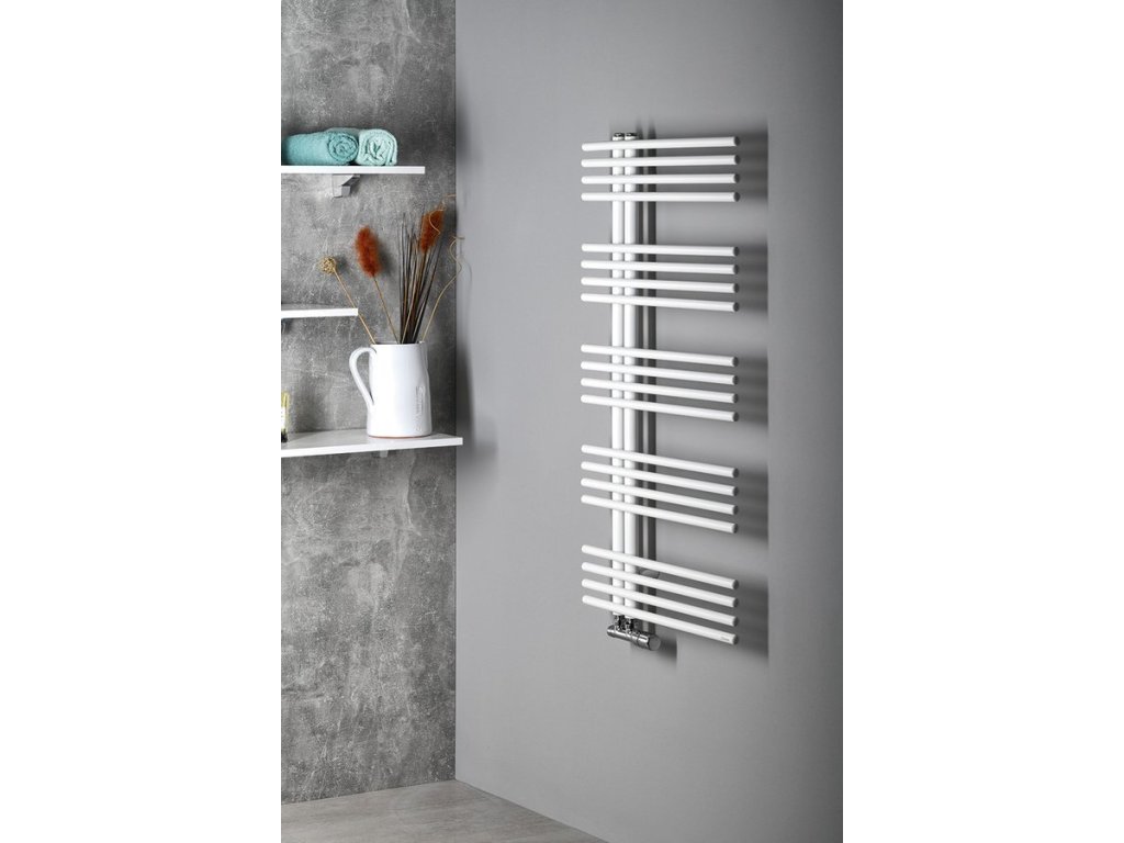 Klasické trubky s kruhovým profilem sestavené v designový radiátor, který lze díky středovému připojení s roztečí 50 mm kombinovat s designovými ventily z naší nabídky.