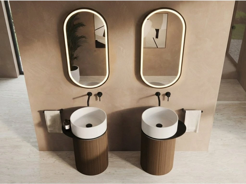 OASIS keramické umyvadlo volně stojící ø 40x89cm, bílá/dub pimento