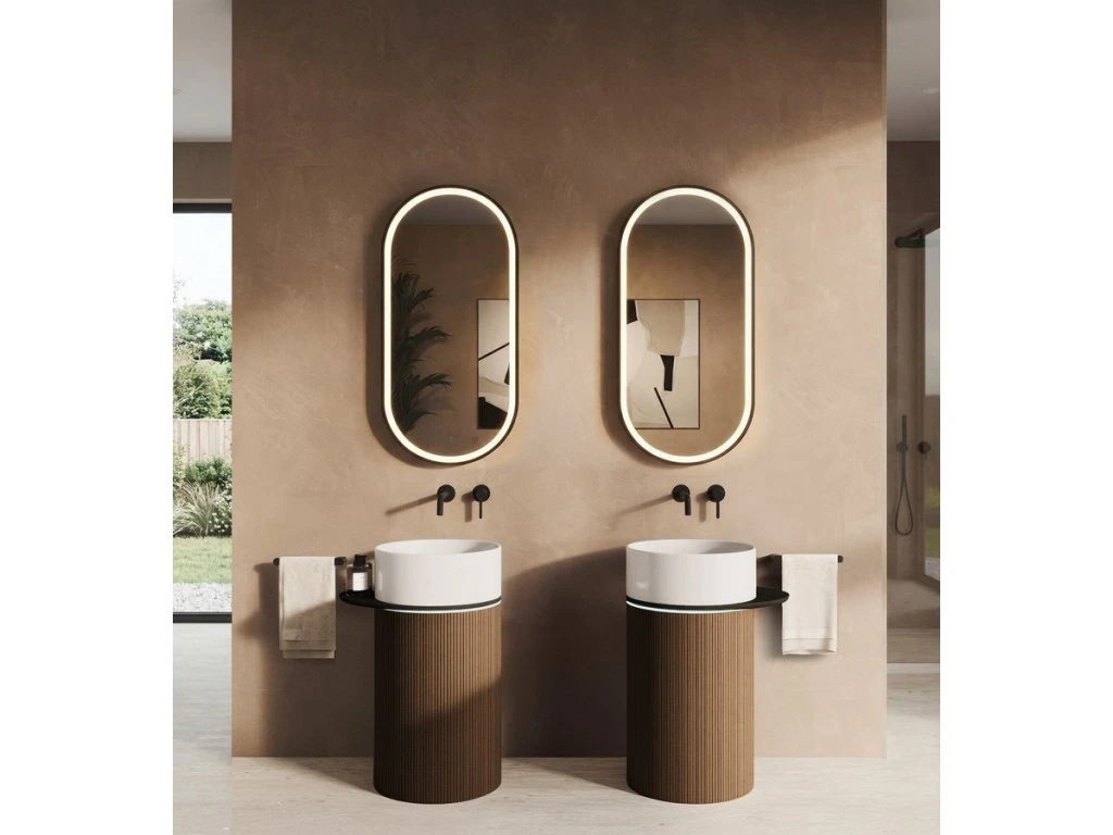 OASIS keramické umyvadlo volně stojící 40x89x48cm, police ke stěně, bílá/dub pimento