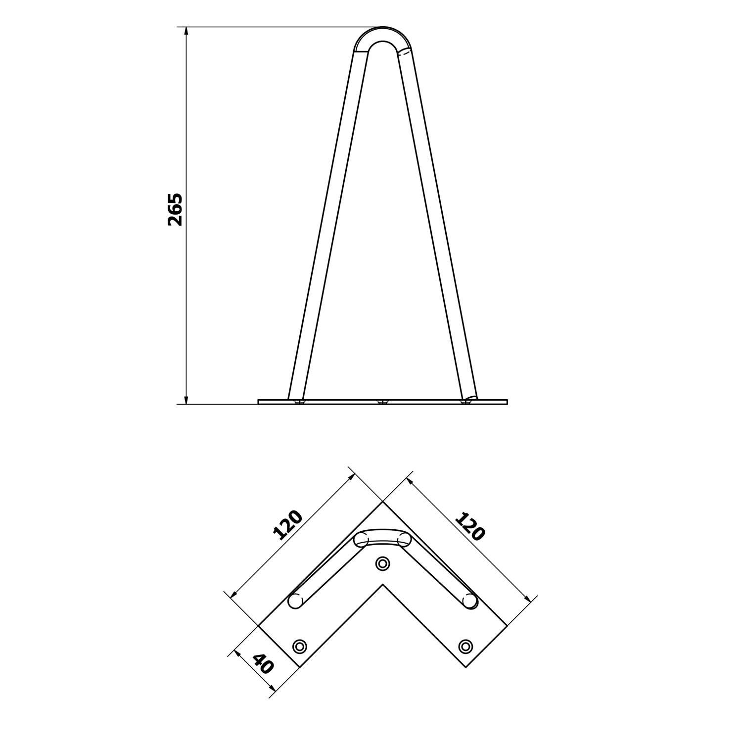 ODETTA podpěrné nohy, výška 265mm, lakovaná ocel, černá mat, 2ks