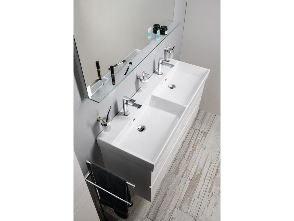 - Při instalaci keramického umyvadla KARE je nutné použít distanční podložky (součástí balení skříňky) a sifon URBINO s Click Clack výpustí (k dokoupení).