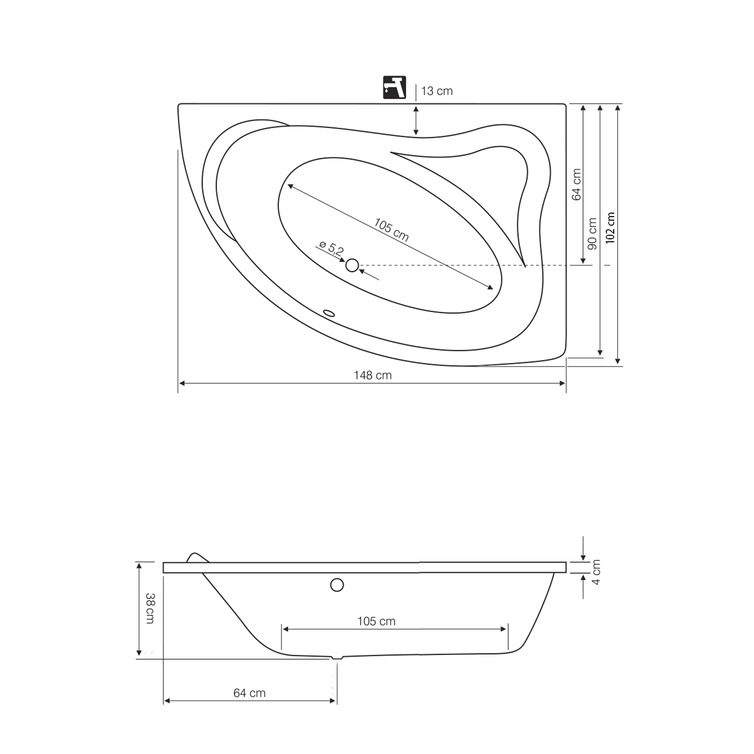ORAVA vana 150x90x38cm, pravá, bílá