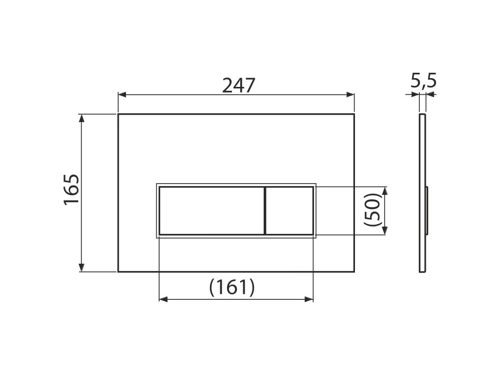 Tlačítko minimálně vystupuje nad obklad díky tlouštce pouhých 5,5 mm