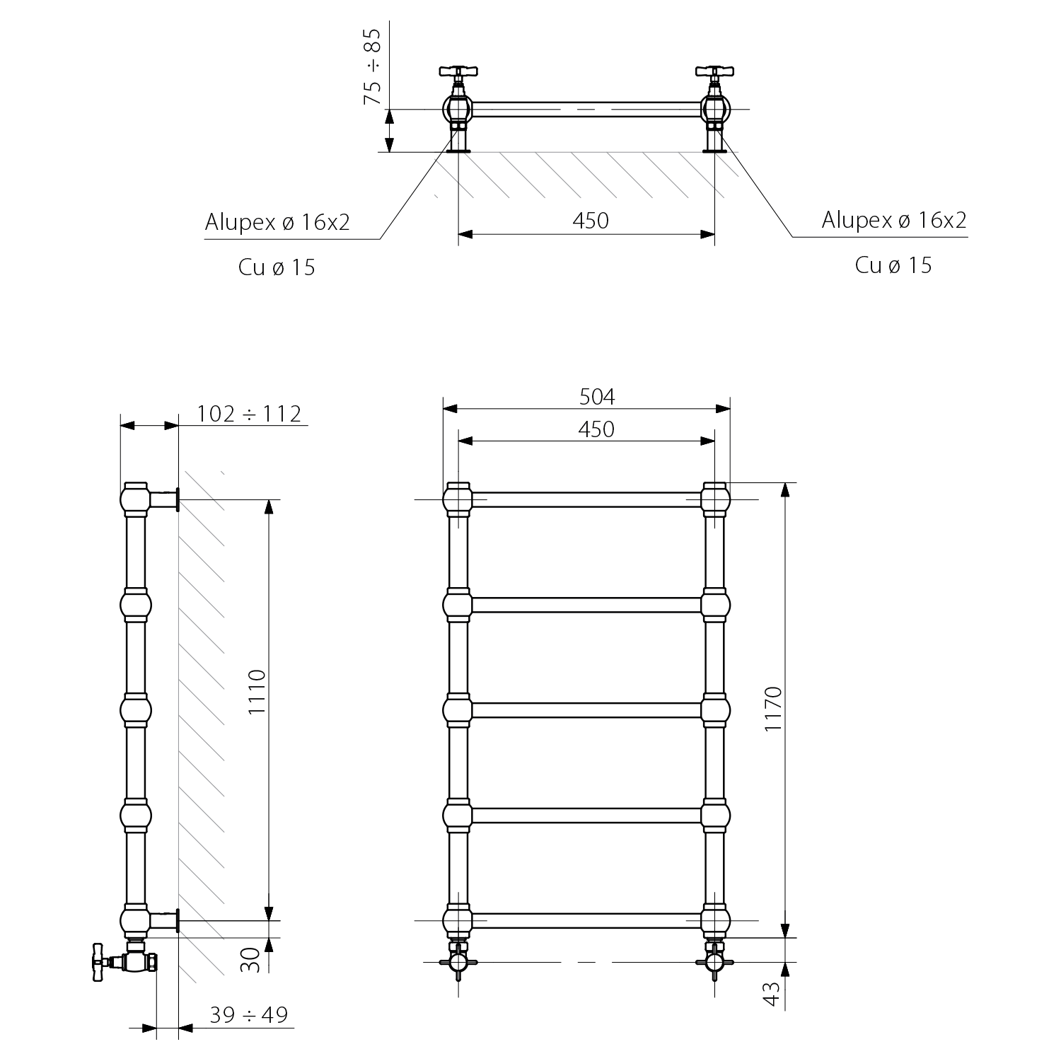Otopné těleso PARIDA v bronzovém provedení dodá koupelně v retro stylu ten správný dobový nádech.