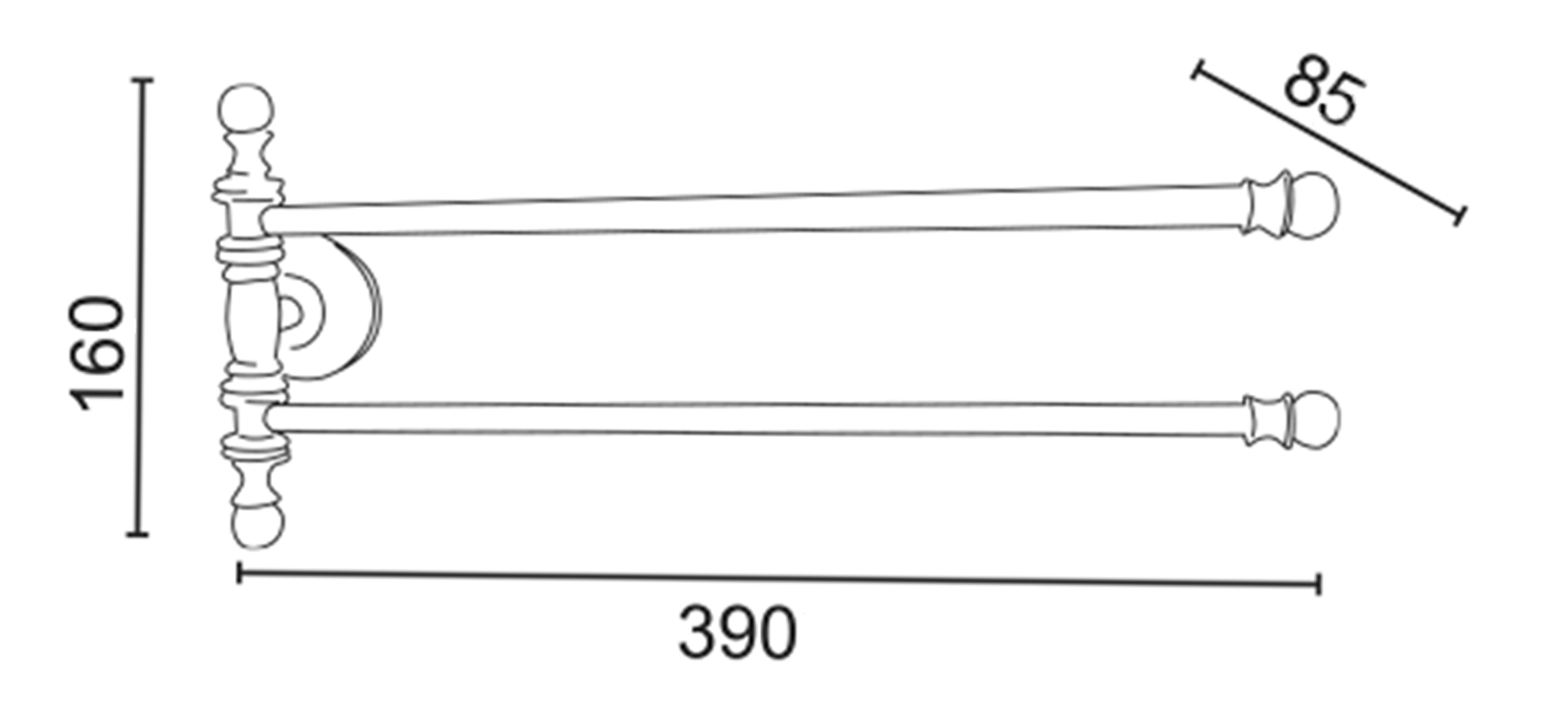 PERLA dvojitý držák ručníků otočný 390mm, zlato