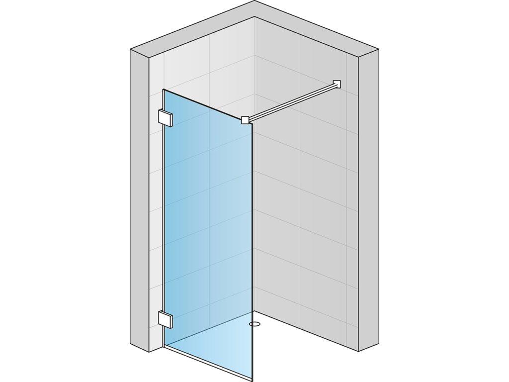 Walk-in zástěna RONAL s 8mm bezpečnostním sklem. Chromované L-kování s těsnicím profilkem. Součástí je stabilizační vzpěra 1250 mm. Antiplaková úprava skla AQUAPERLE pro snadné čištění. Walk-in zástěnu lze vybavit chromovaným držákem ručníku nebo skleněnou poličkou (za příplatek).Doplňkové parametry