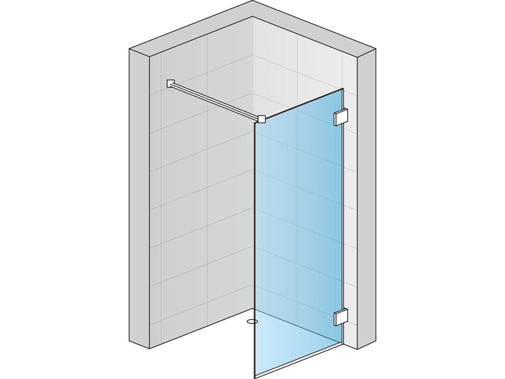 Walk-in zástěna RONAL s 8mm bezpečnostním sklem. Chromované L-kování s těsnicím profilkem. Součástí je stabilizační vzpěra 1250 mm. Antiplaková úprava skla AQUAPERLE pro snadné čištění. Walk-in zástěnu lze vybavit chromovaným držákem ručníku nebo skleněnou poličkou (za příplatek).Doplňkové parametry