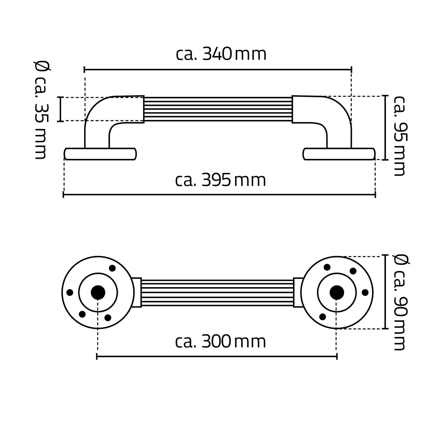Odolné plastové madlo poskytuje bezpečnou oporu díky drážkám na rukojeti, které poskytují bezpečné uchopení i mokrýma rukama.