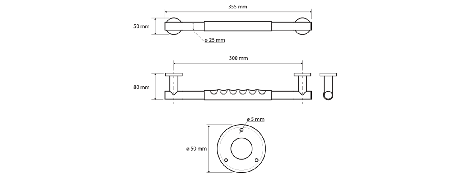 Pevnostní madlo s protiskluzem 300mm, nerez lesk