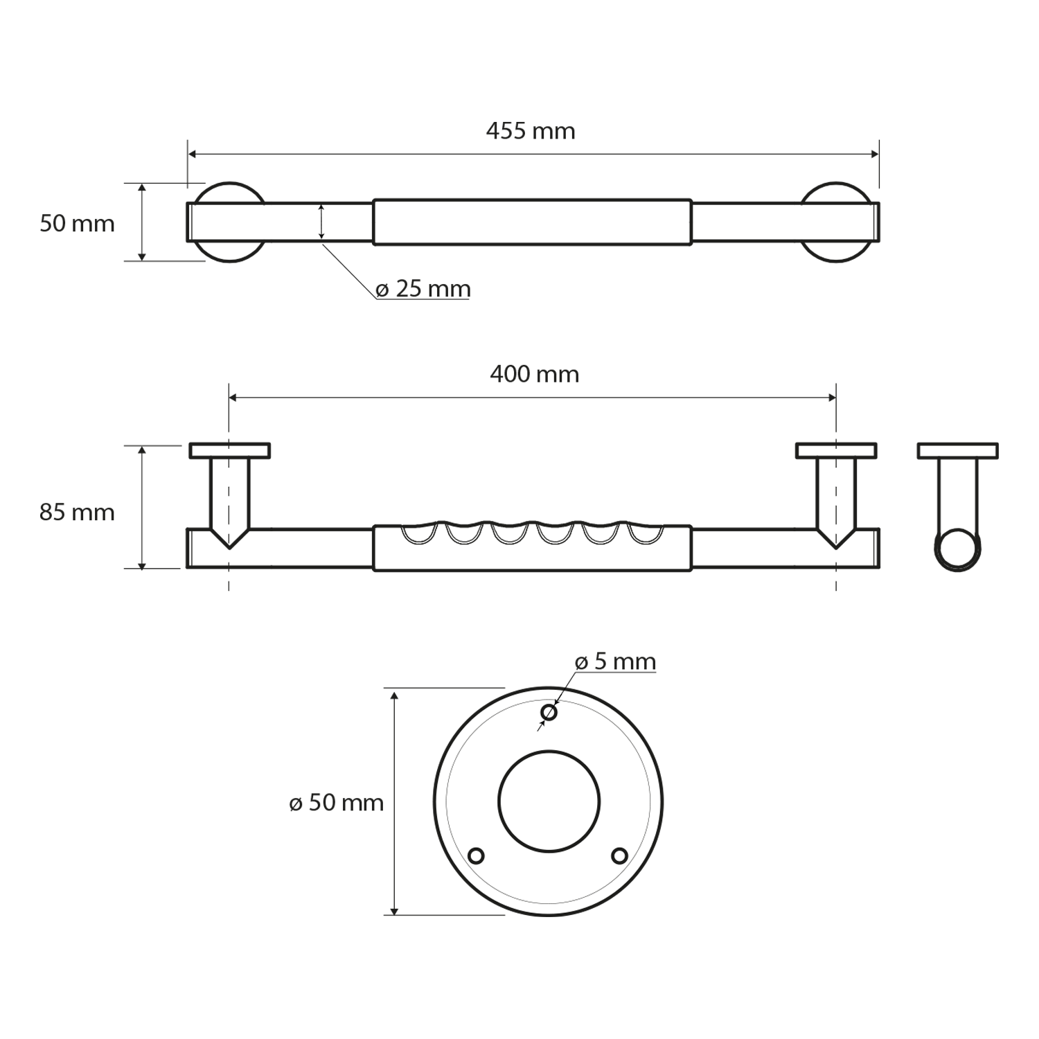 Pevnostní madlo s protiskluzem 400mm, nerez lesk