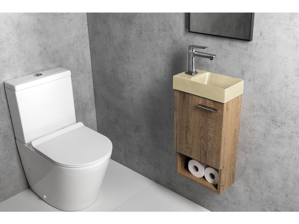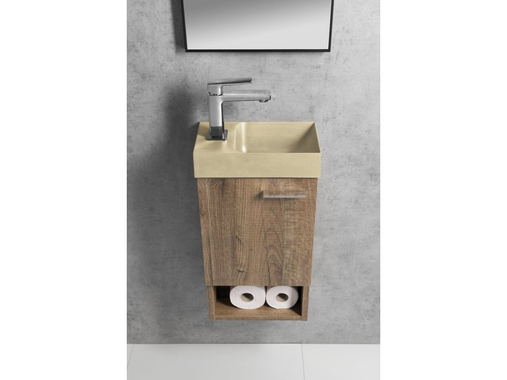 PICCOLINO betonové umývátko 30,8x17cm, baterie vlevo, žlutá mat