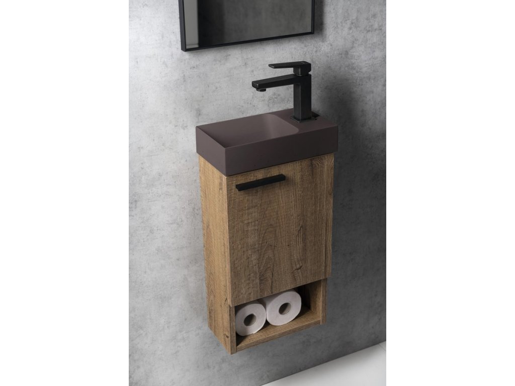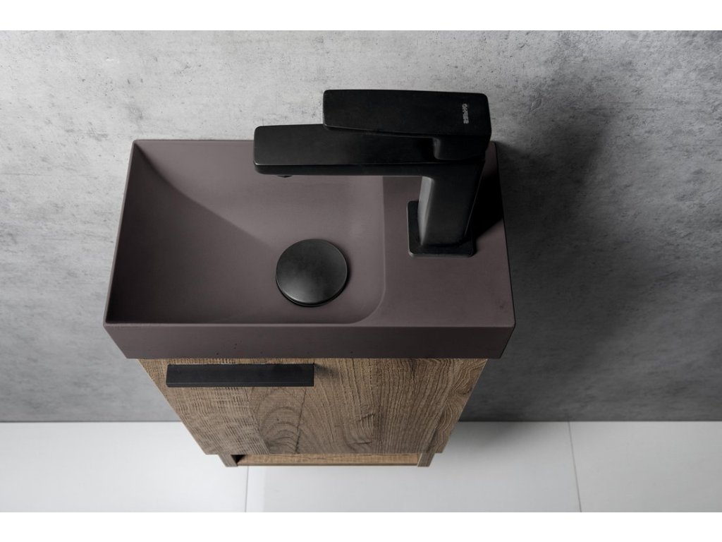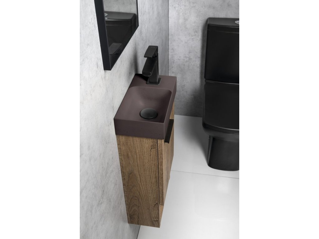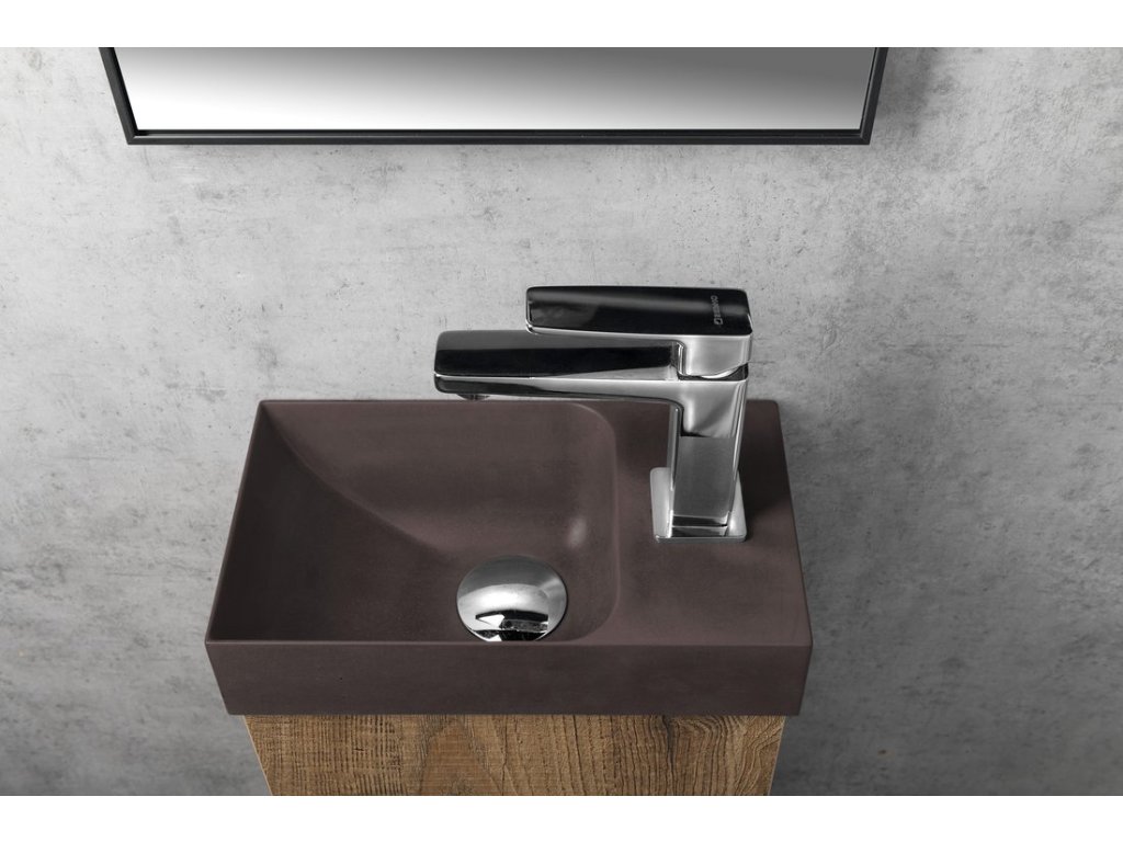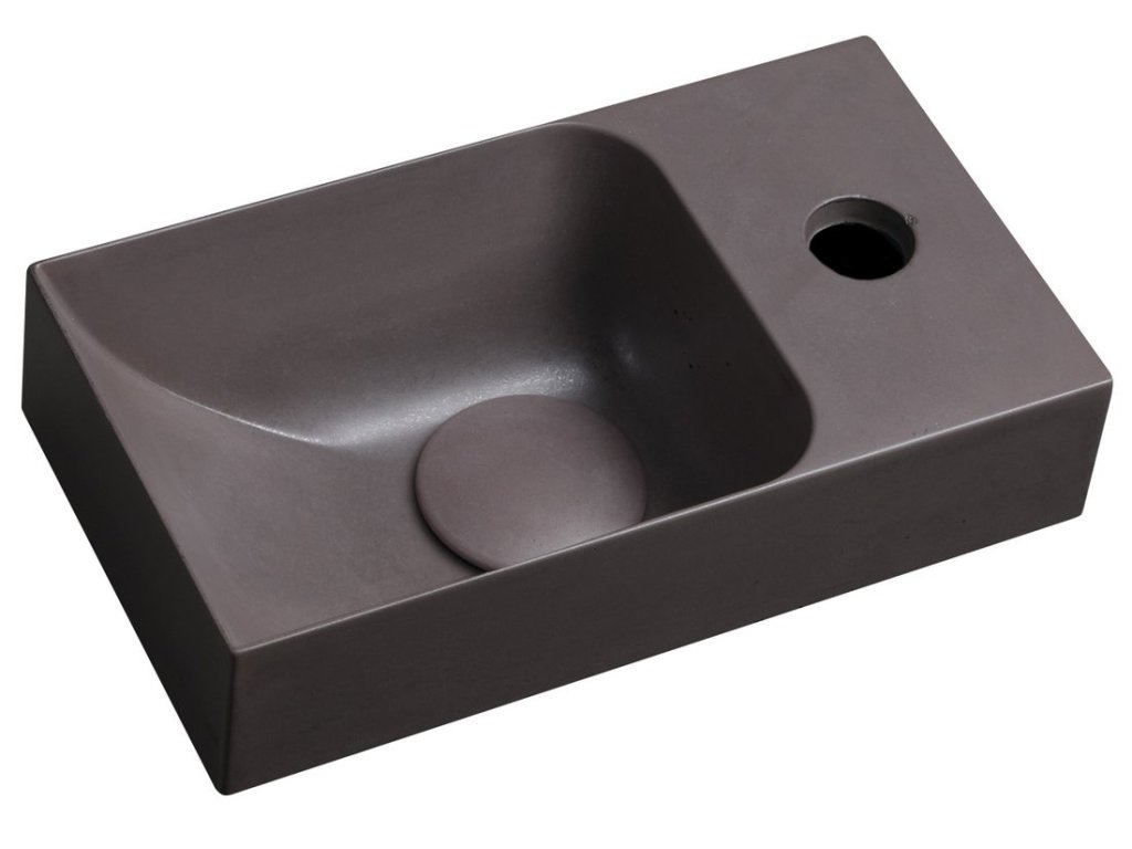 PICCOLINO betonové umývátko 30,8x17cm, baterie vpravo, tmavě hnědá mat