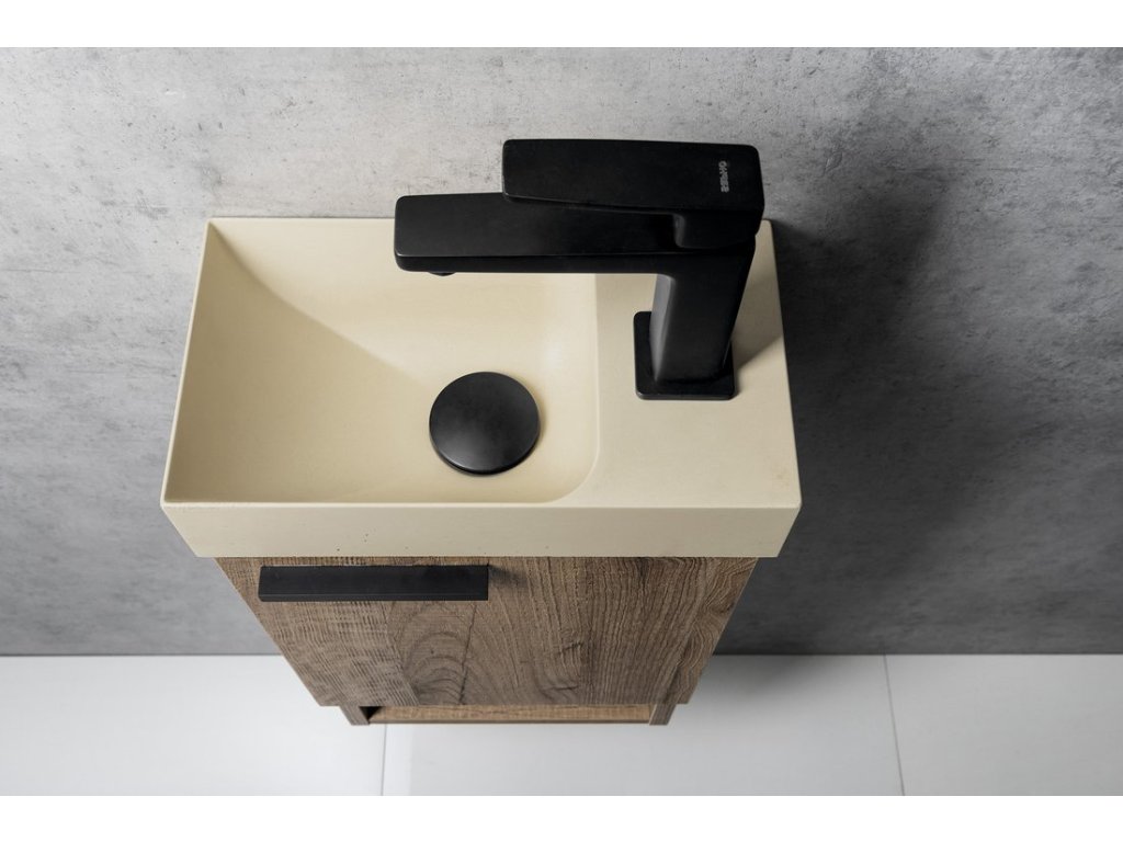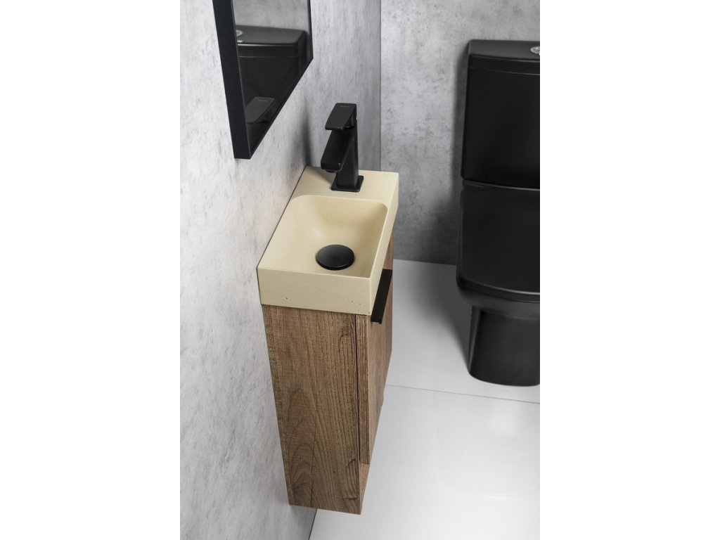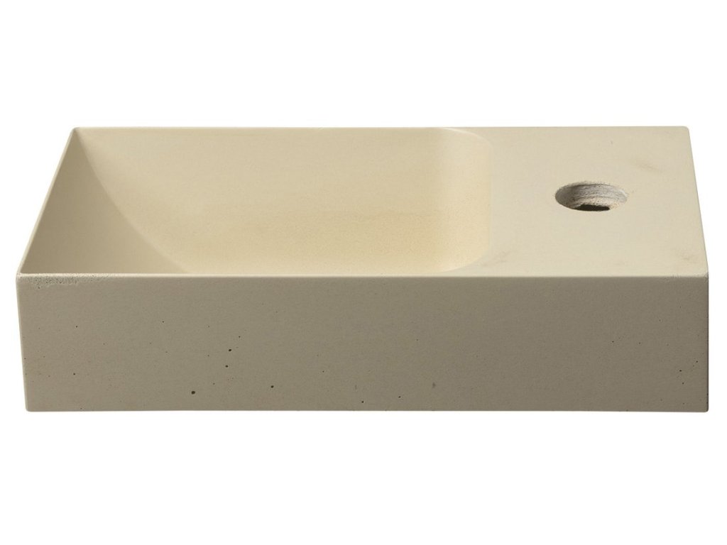 PICCOLINO betonové umývátko 30,8x17cm, baterie vpravo, žlutá mat