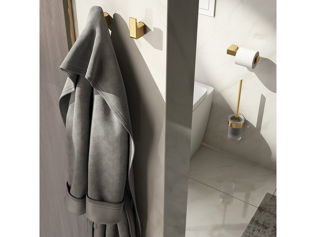 PIRENEI WC štětka závěsná, mléčné sklo, zlato mat