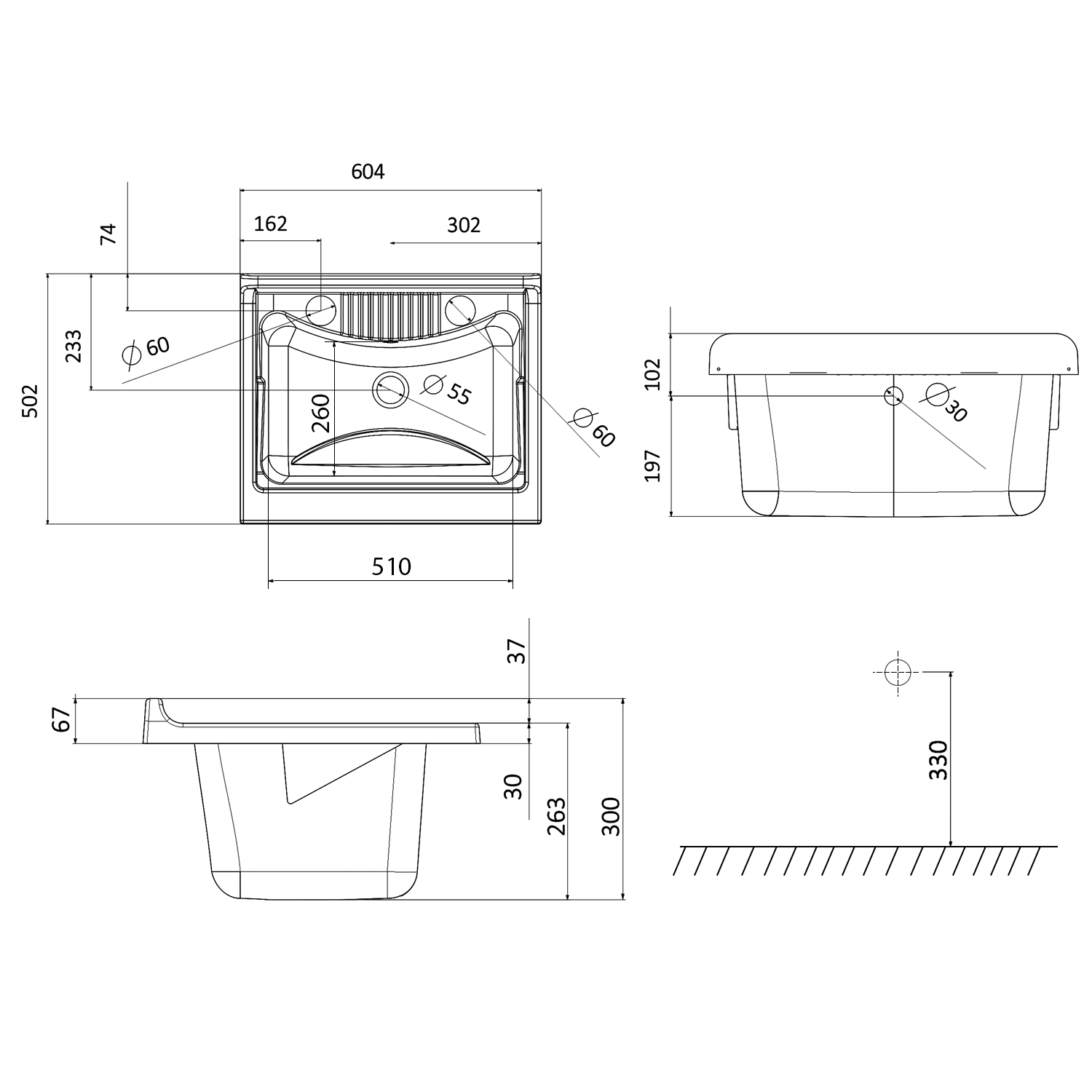 Plastová výlevka se skříňkou 60x50 cm, včetně sifonu