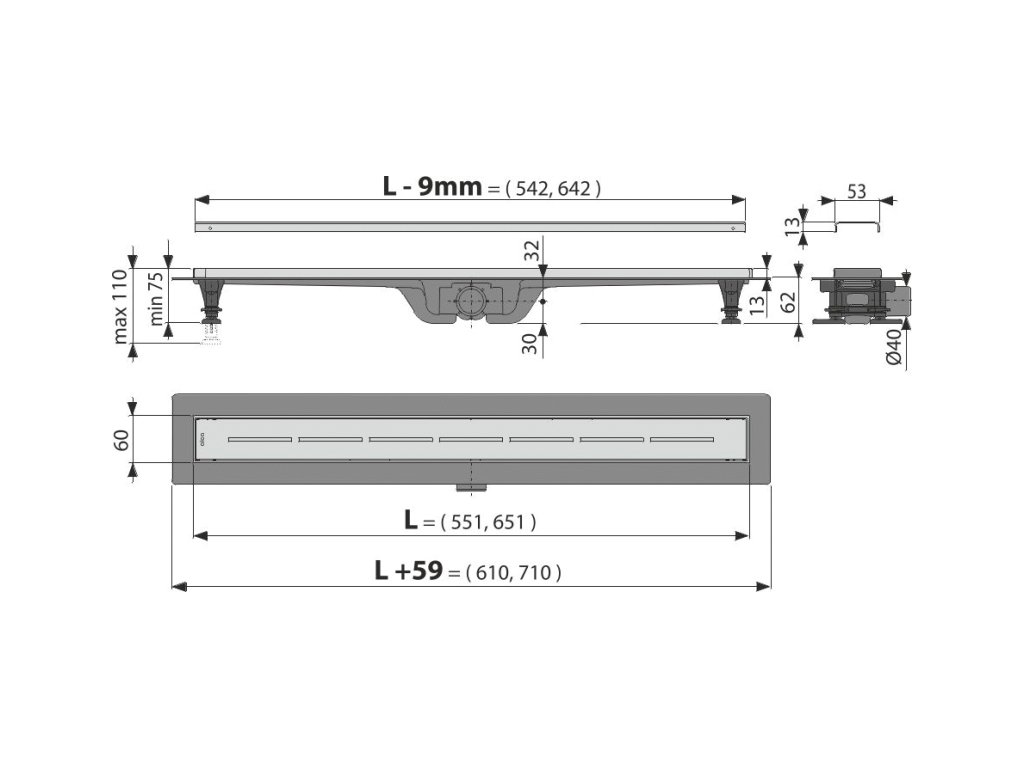 Celková stavební výška - 75 - 110 - mm
