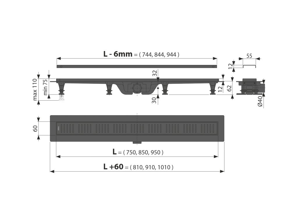 Celková stavební výška - 75 - 110 - mm