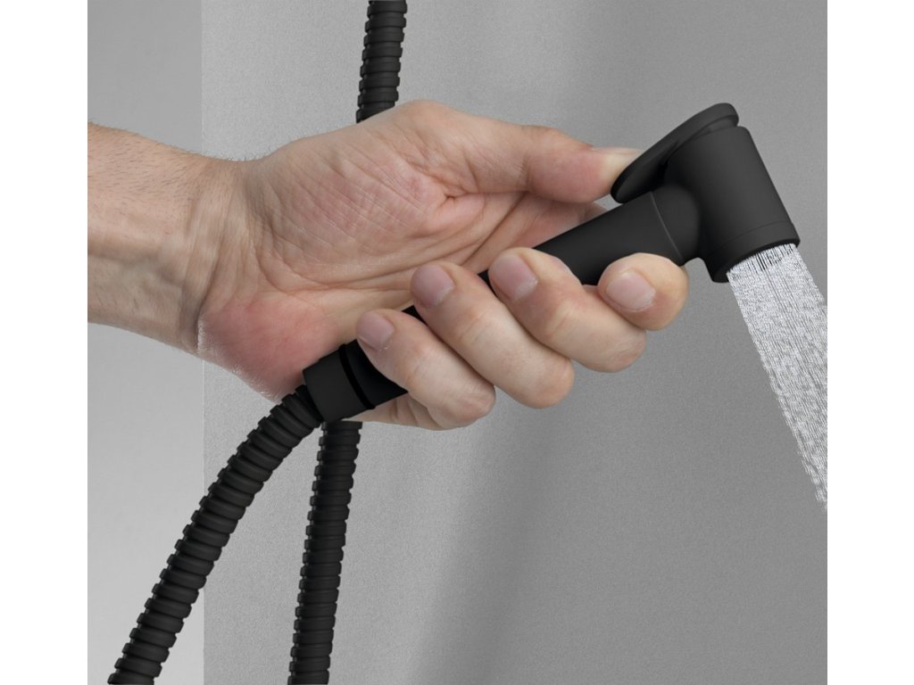 Podomítková bidetová baterie se Stop sprškou, kulatá, progresivní kartuše, černá mat
