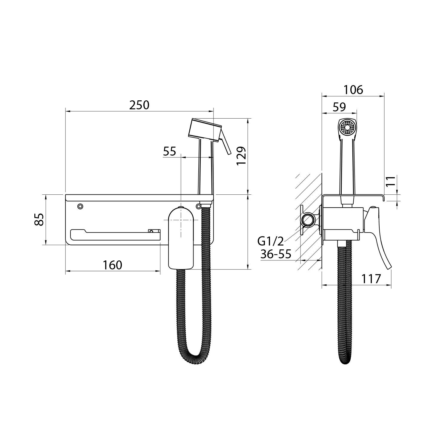 Podomítková bidetová baterie se Stop sprškou a držákem toaletního papíru, chrom