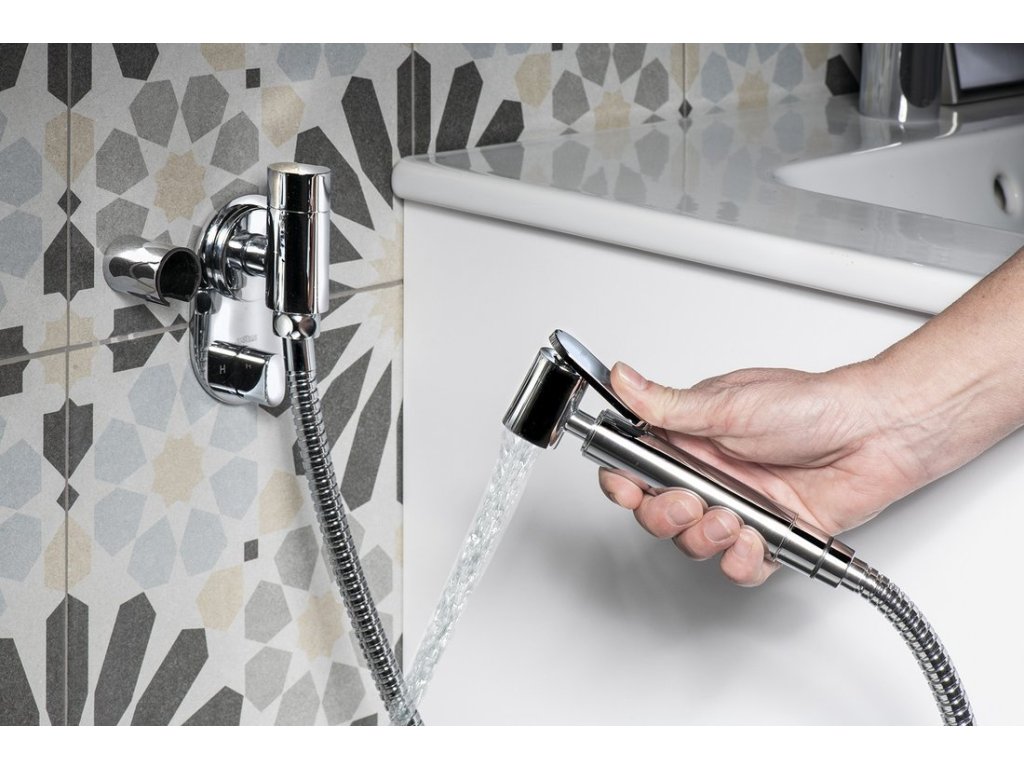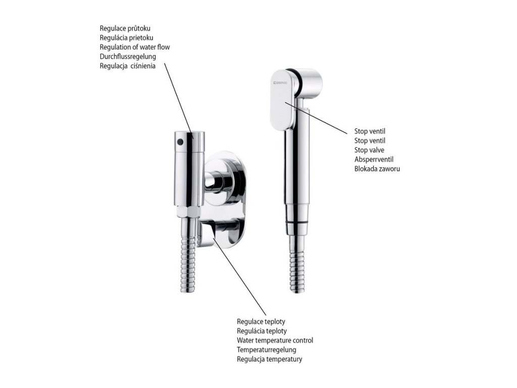 Podomítkový bidetový ventil s regulátorem teploty a bidetovou sprškou, chrom