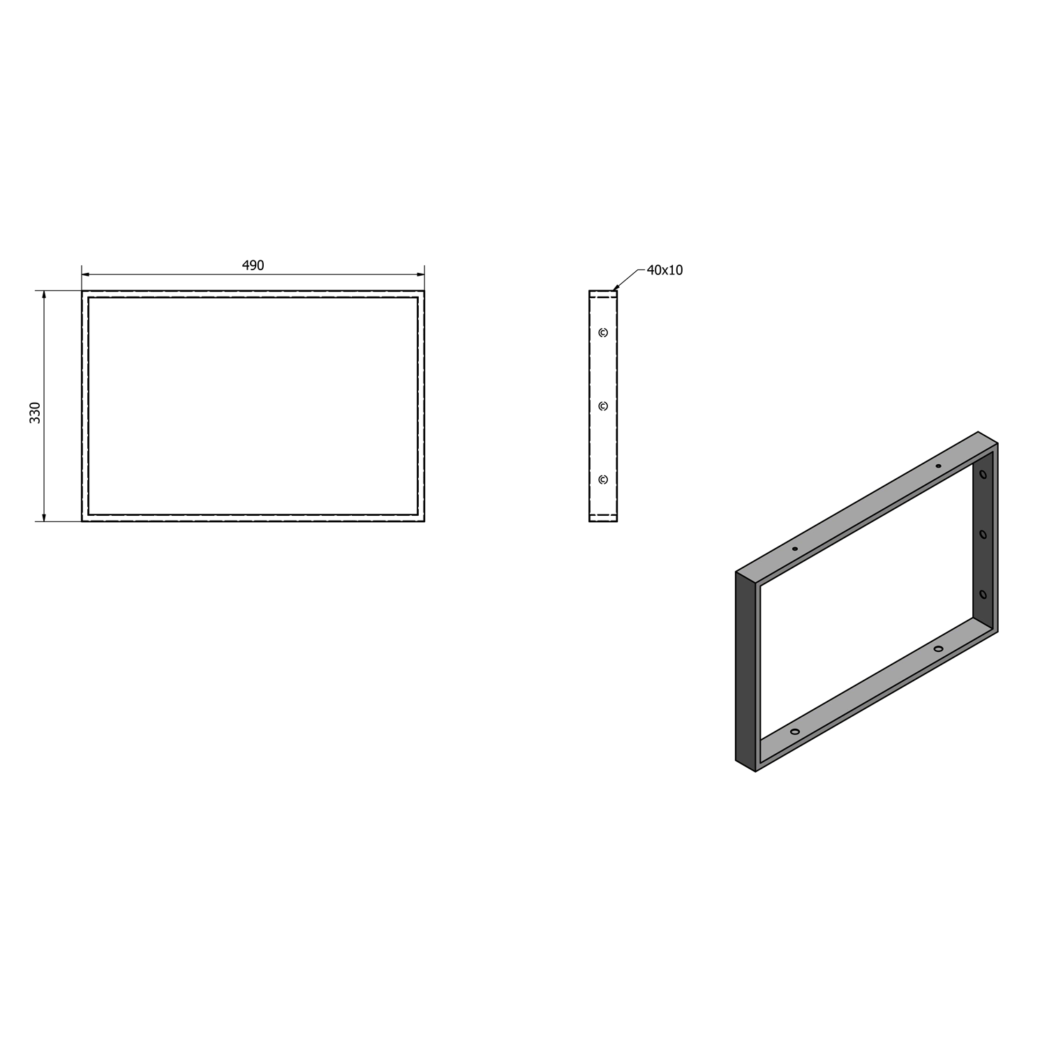Podpěrná konzole 490x330x40mm, lakovaná ocel, bílá mat, 1 ks