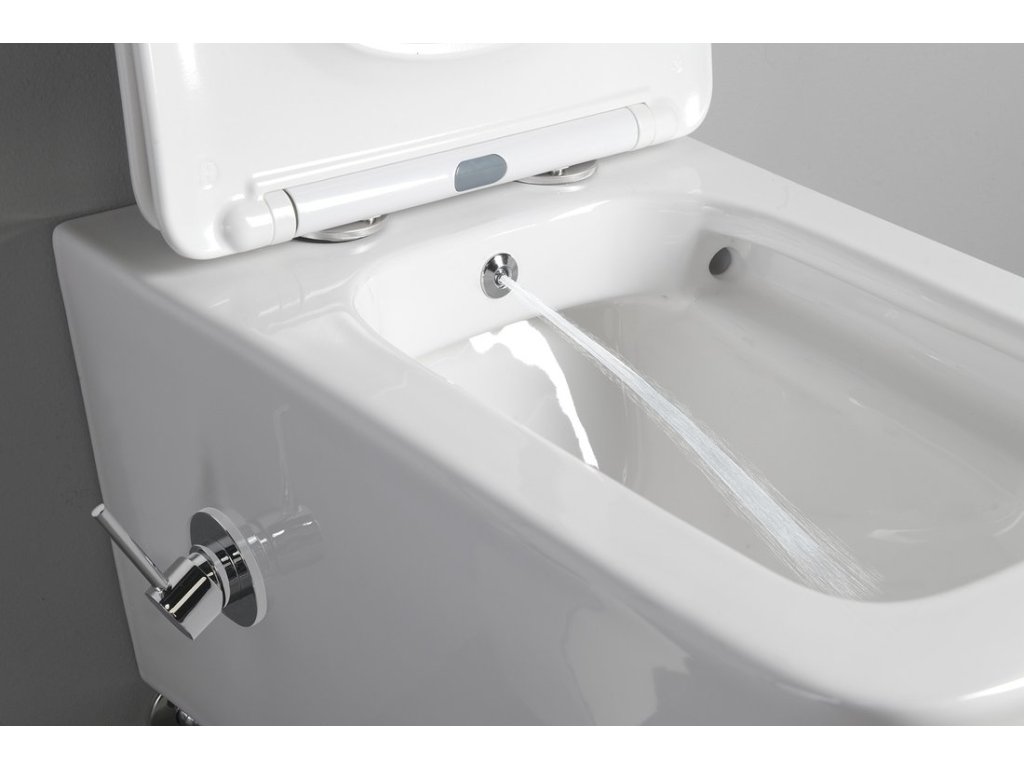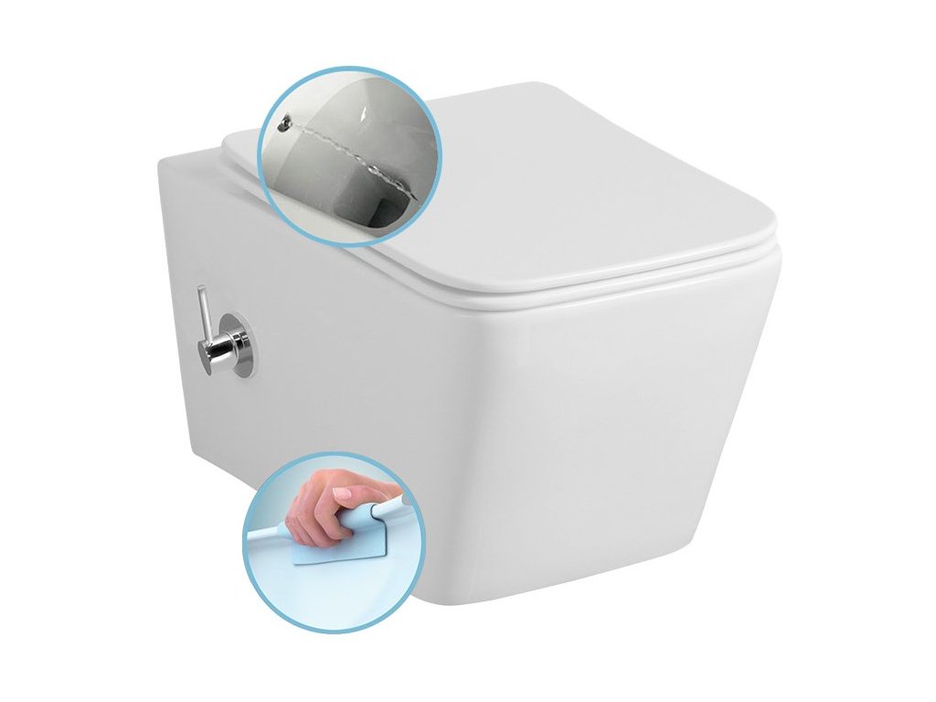 PORTO CLEANWASH závěsná WC mísa Rimless, integrovaná baterie a bidet. sprška, 36x52cm, bílá
