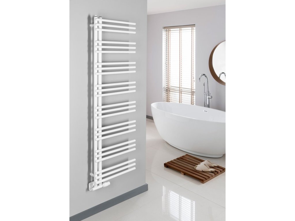 Klasické trubky s kruhovým profilem sestavené v designový radiátor, který lze díky středovému připojení s roztečí 50 mm kombinovat s ventily z naší nabídky.