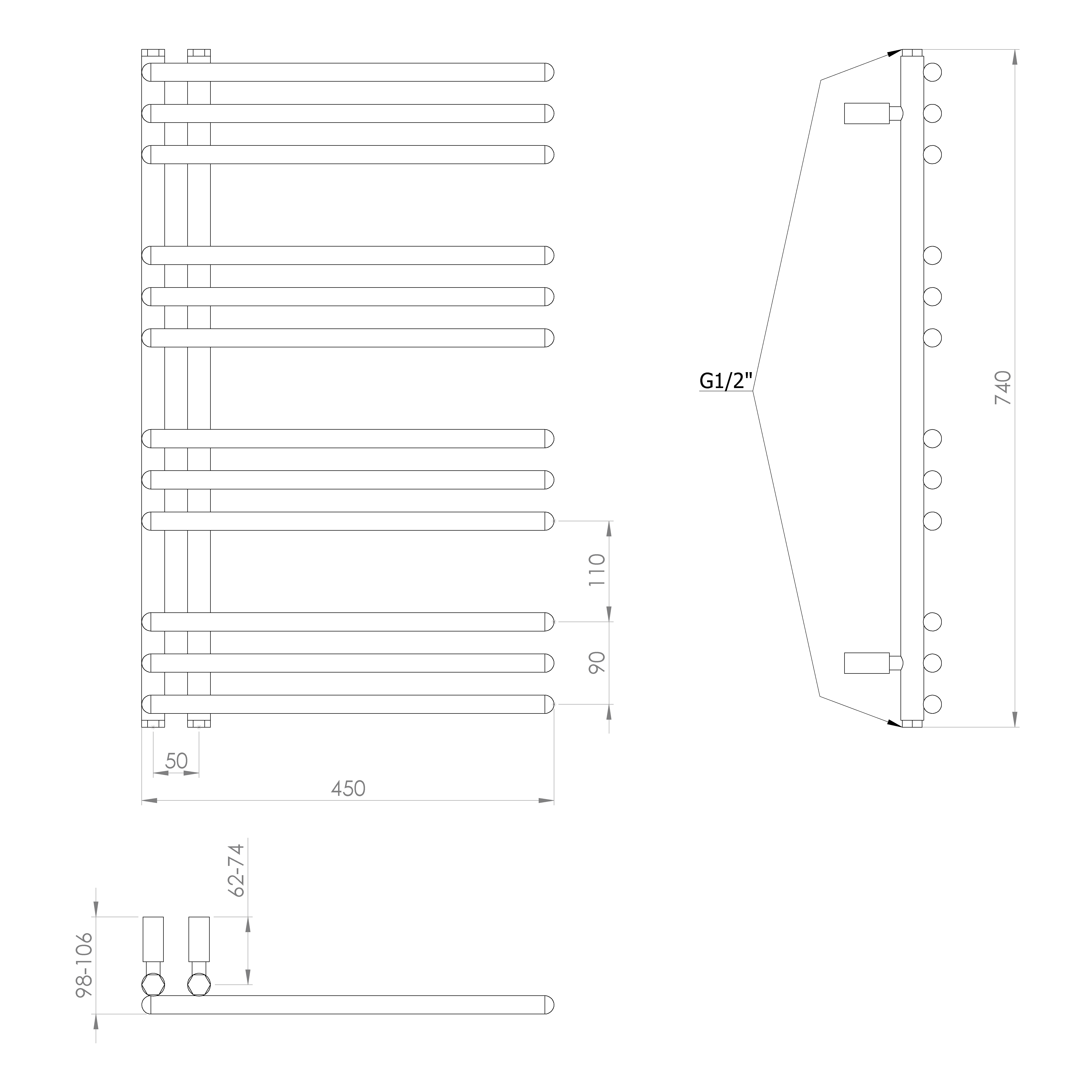 Klasické trubky s kruhovým profilem sestavené v designový radiátor, který lze díky středovému připojení s roztečí 50 mm kombinovat s ventily z naší nabídky.