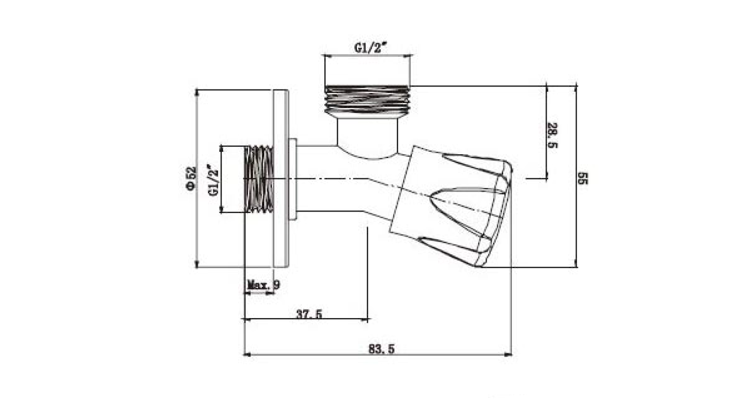 Pračkový ventil se zpětným ventilem, 1/2"x3/4", chrom