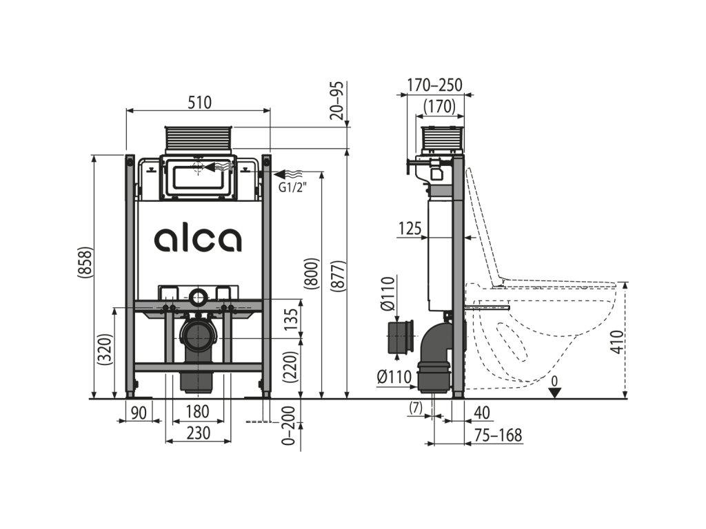 Pro montáž závěsného WC s připojovací roztečí 180 mm nebo 230 mm
