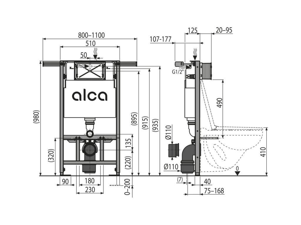 Pro montáž závěsného WC s připojovací roztečí 180 mm nebo 230 mm