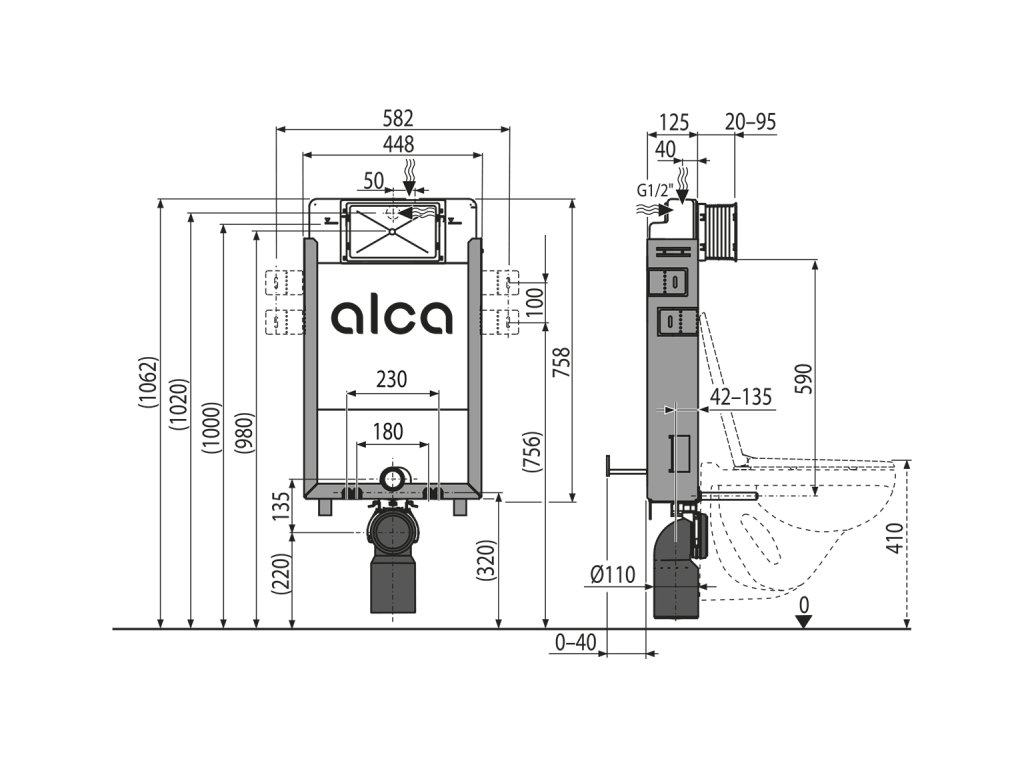 Montážní výška 1062 mm