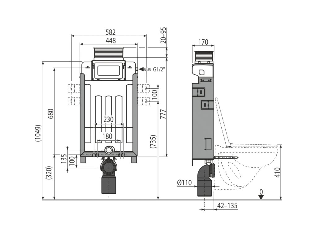 Použití:Pro montáž závěsného WC s připojovací roztečí 180 mm nebo 230 mm
