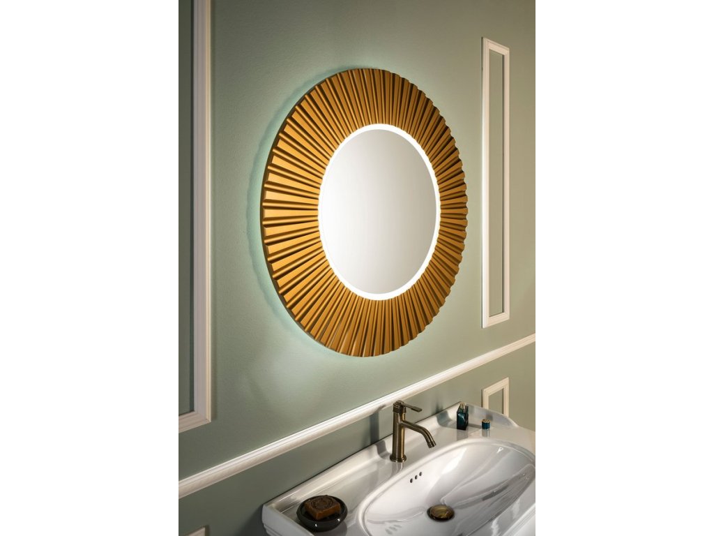 PRIDE STRIP kulaté zrcadlo s LED osvětlením v rámu ø 90cm, bronz
