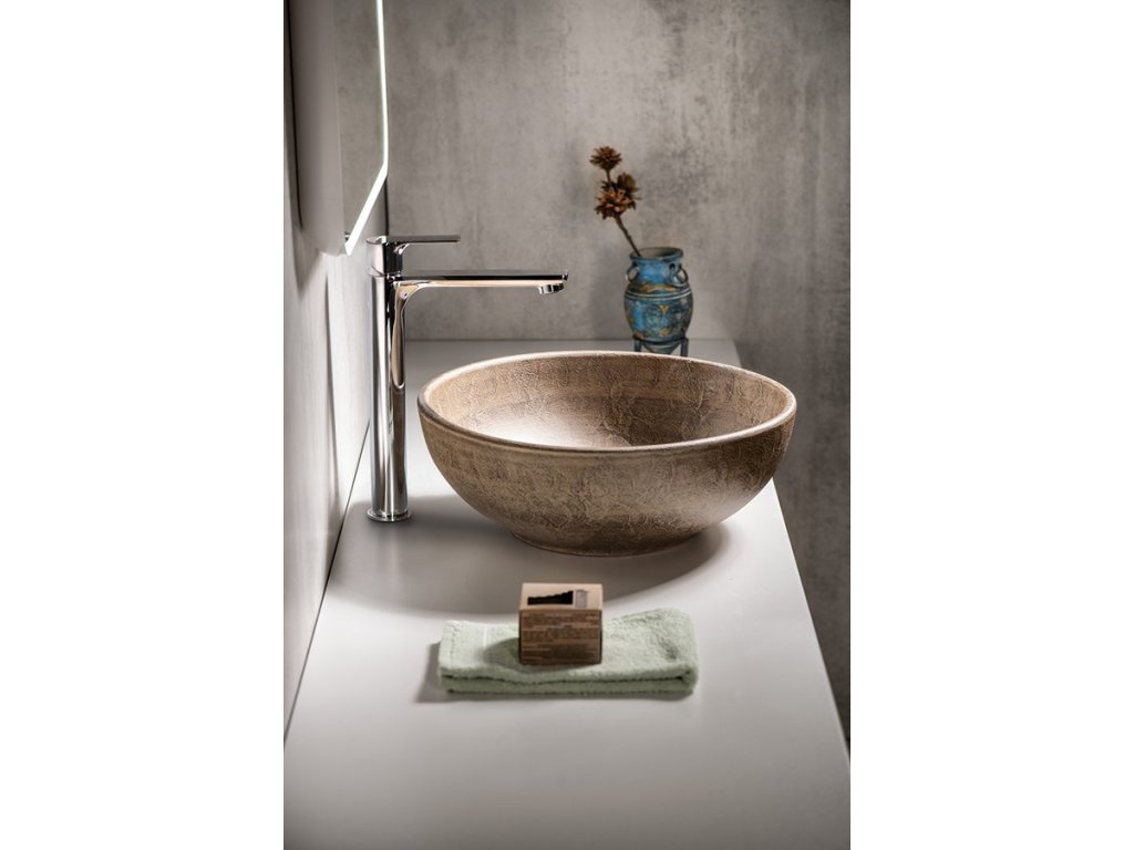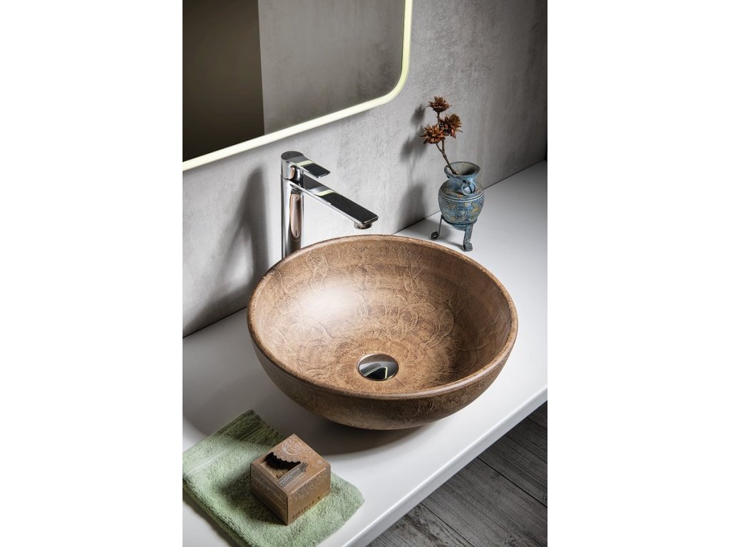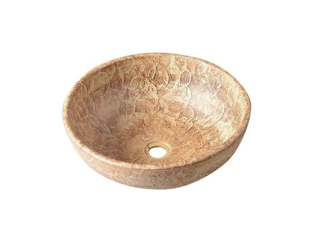 PRIORI keramické umyvadlo na desku, Ø 41 cm, hnědá se vzorem