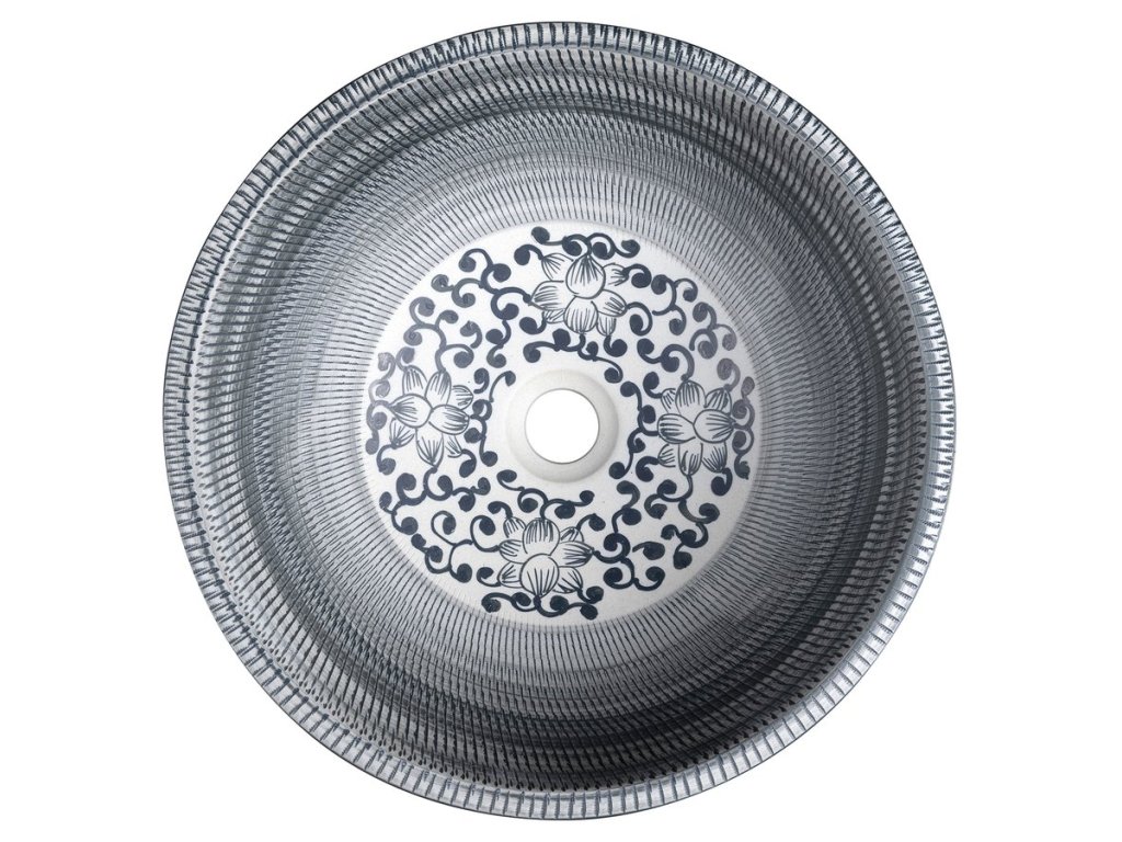 PRIORI keramické umyvadlo na desku, Ø 41 cm, modrá se vzorem