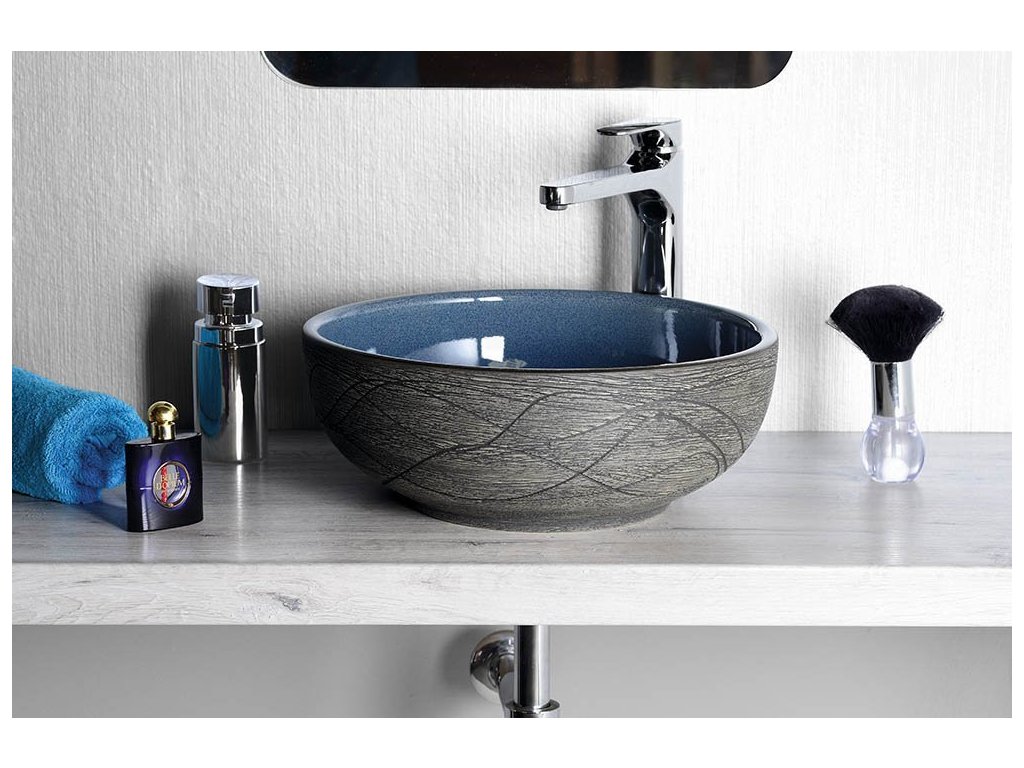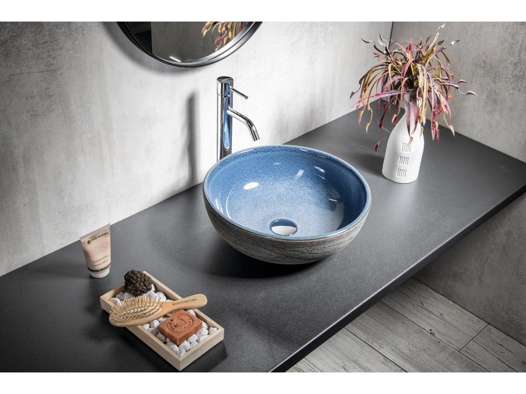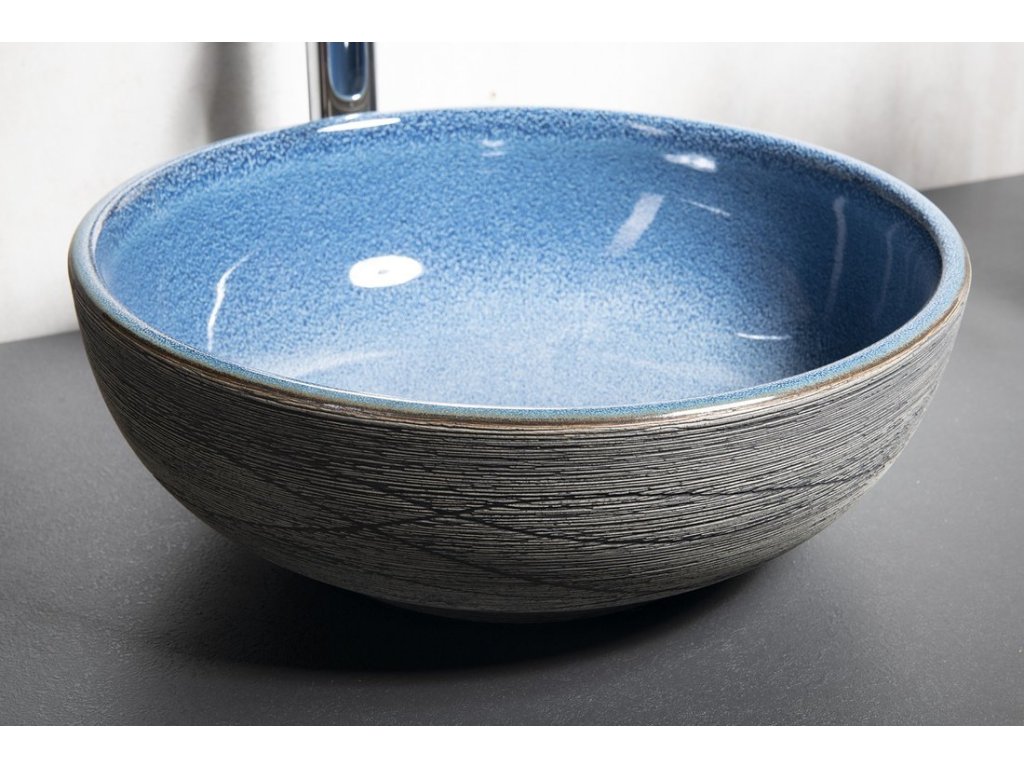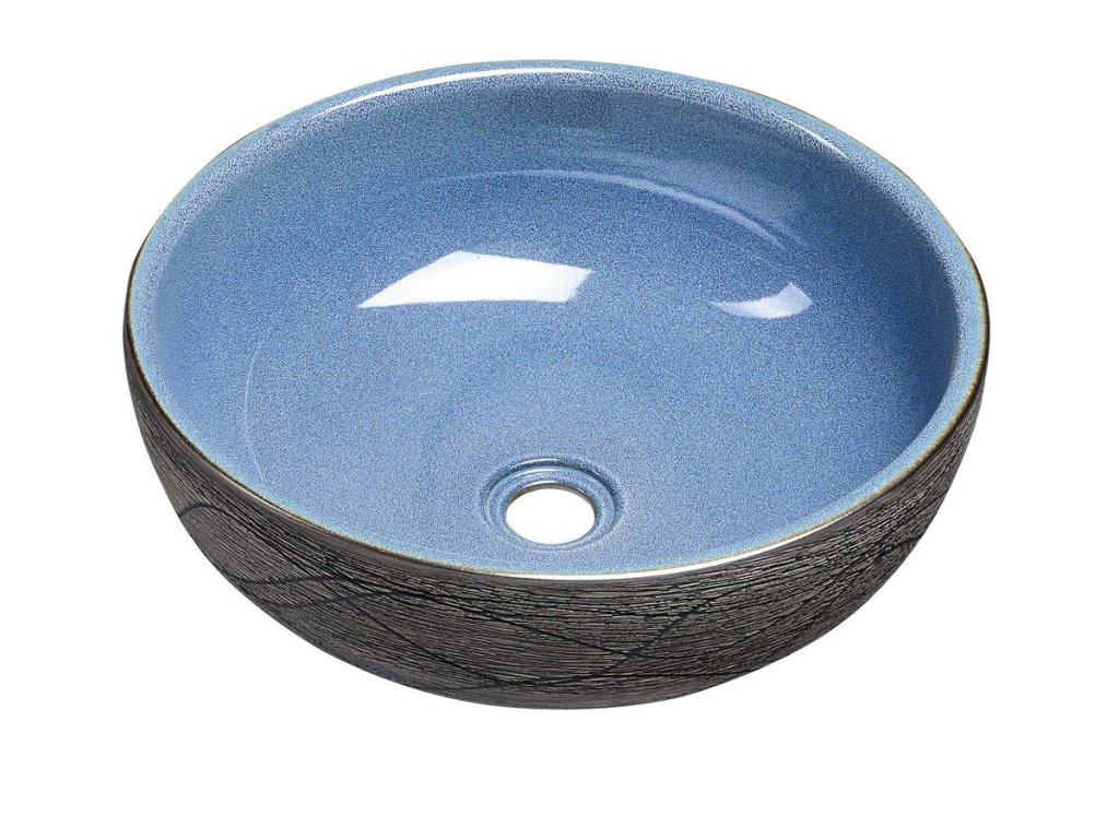 PRIORI keramické umyvadlo na desku, Ø 41 cm, modrá/šedá