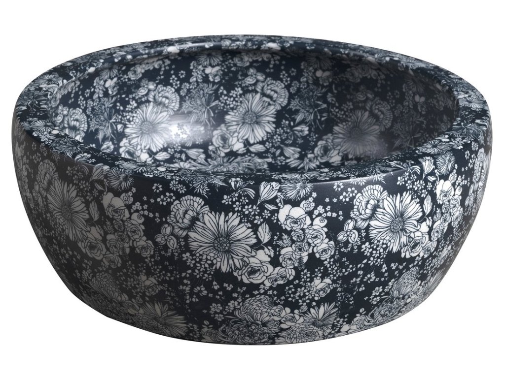 PRIORI keramické umyvadlo na desku, Ø 41 cm, modré květy