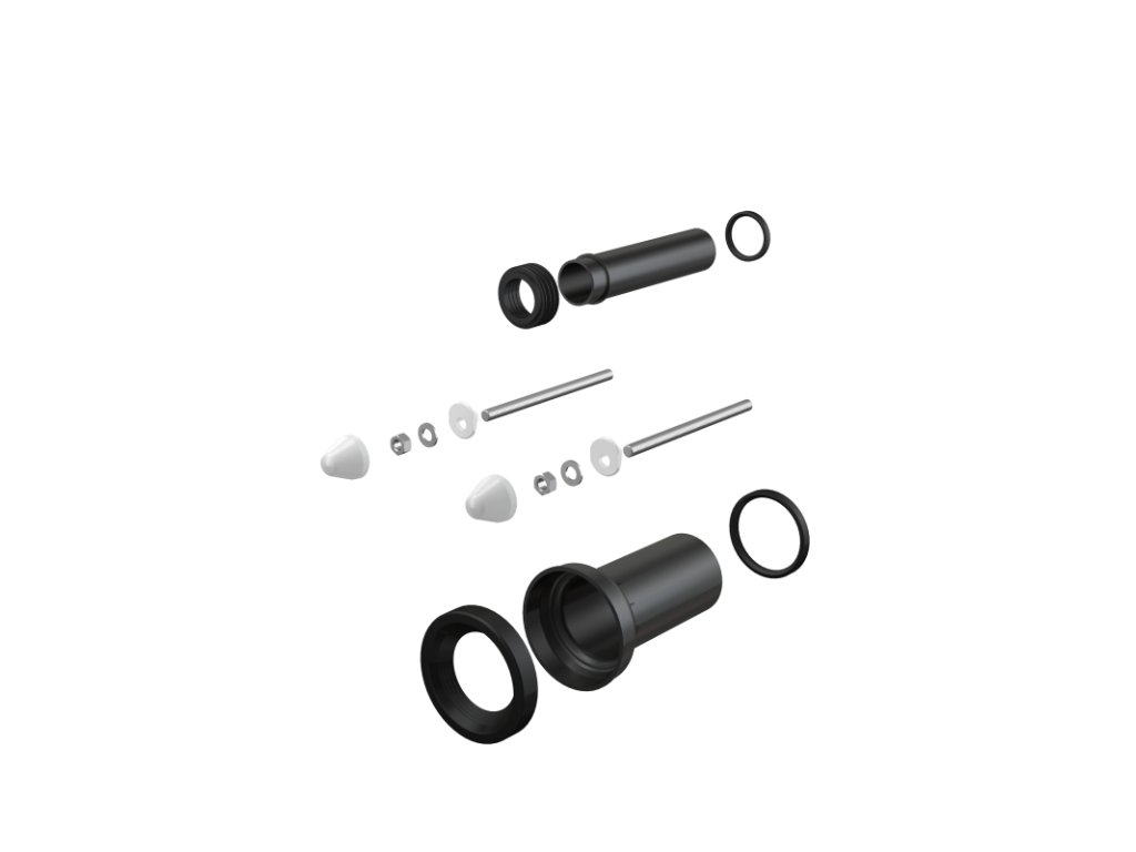 Fixační set pro uchycení WC mísy: závitová tyč M12 – 2 ks, podložky – 4 ks, krytka – 2 ks, matice – 2 ks, chránička závitu – 2 ks